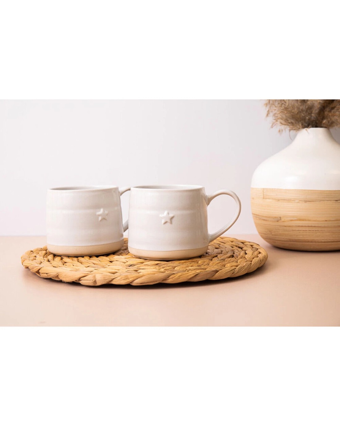 Mikasa Farmhouse 2pc Star Stoneware Mugs Set 380ml Durable Glossy Finish - White