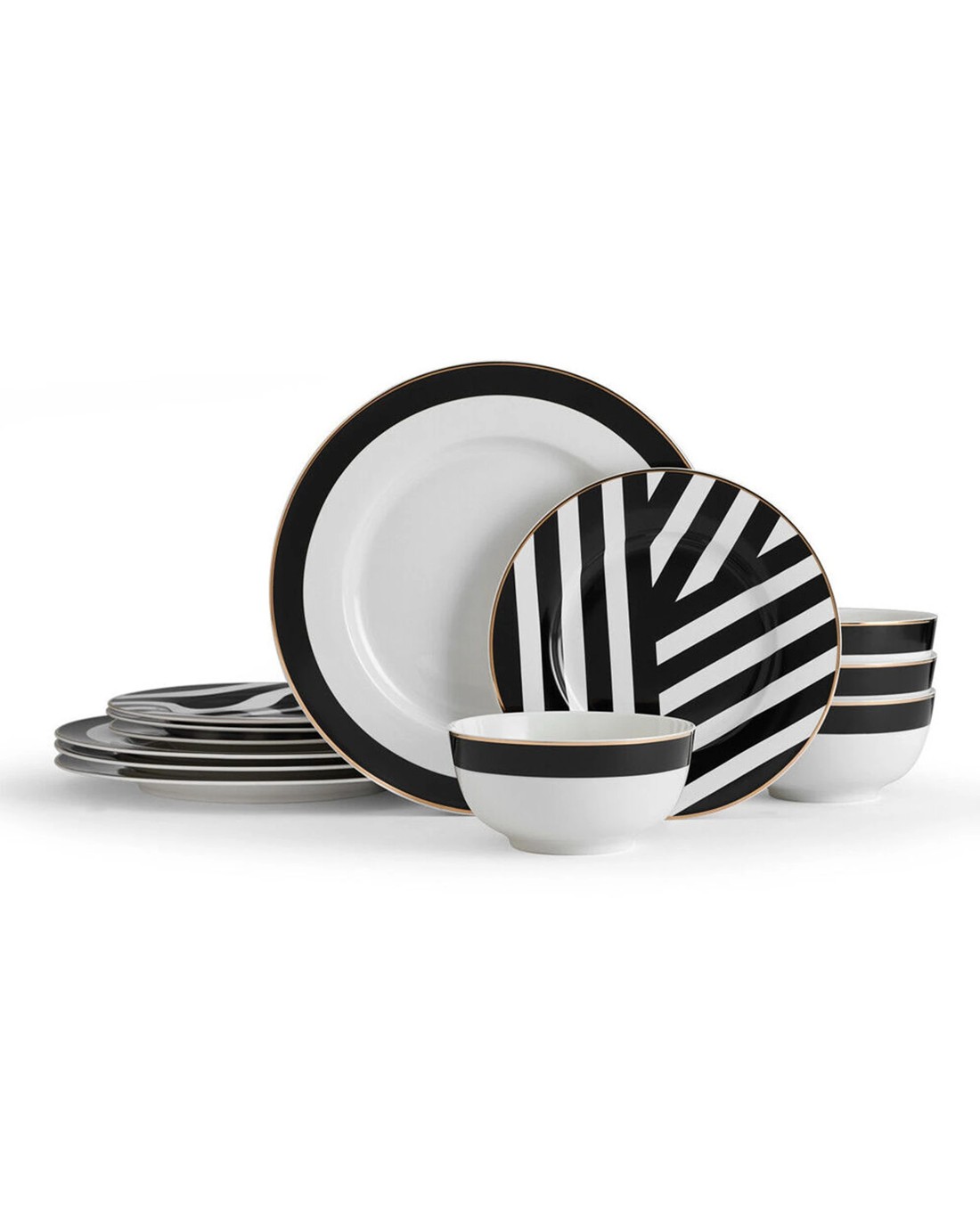 Complete 12-Piece Dinner Set Includes four dinner plates, side plates, and cereal bowls, offering a coordinated and stylish table setting.