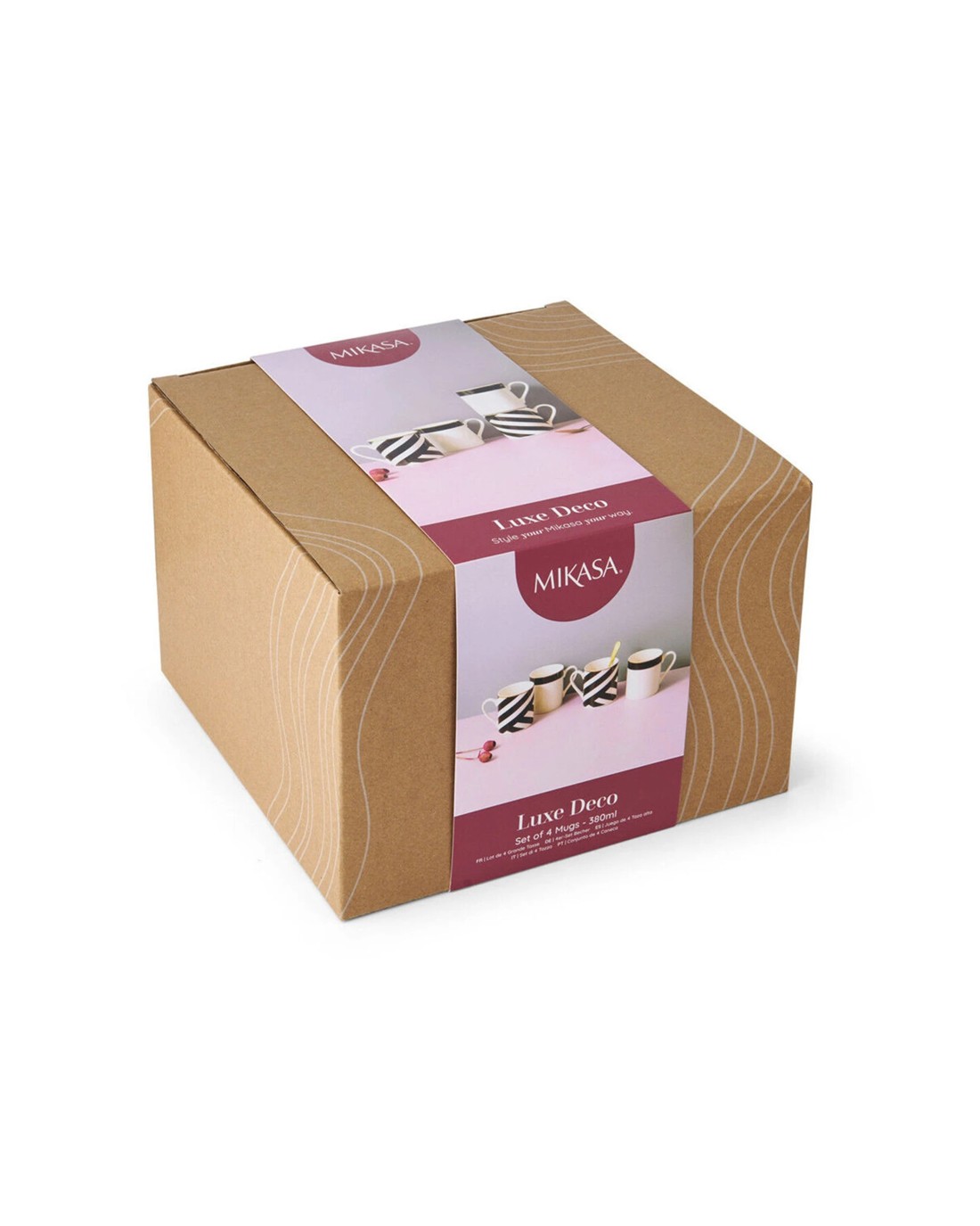 Mikasa Luxe Deco 4pc Kitchen China Mug Set 380ml Art Deco Trim - Multi