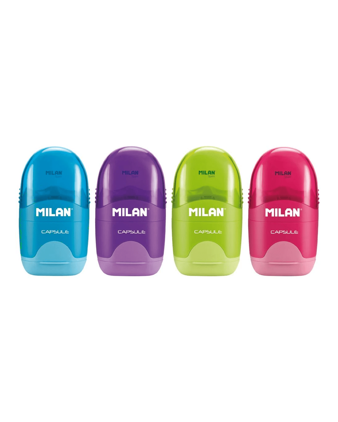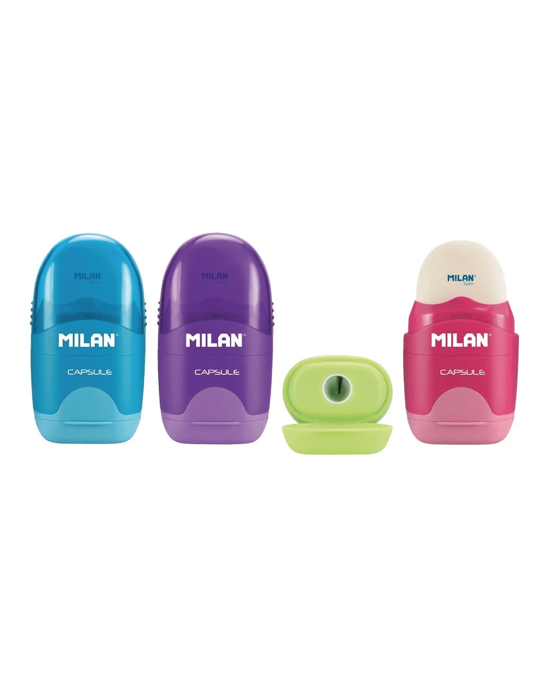 Sold by OfficeworksMilan Capsule 1 Hole Sharpener and Eraser Assorted