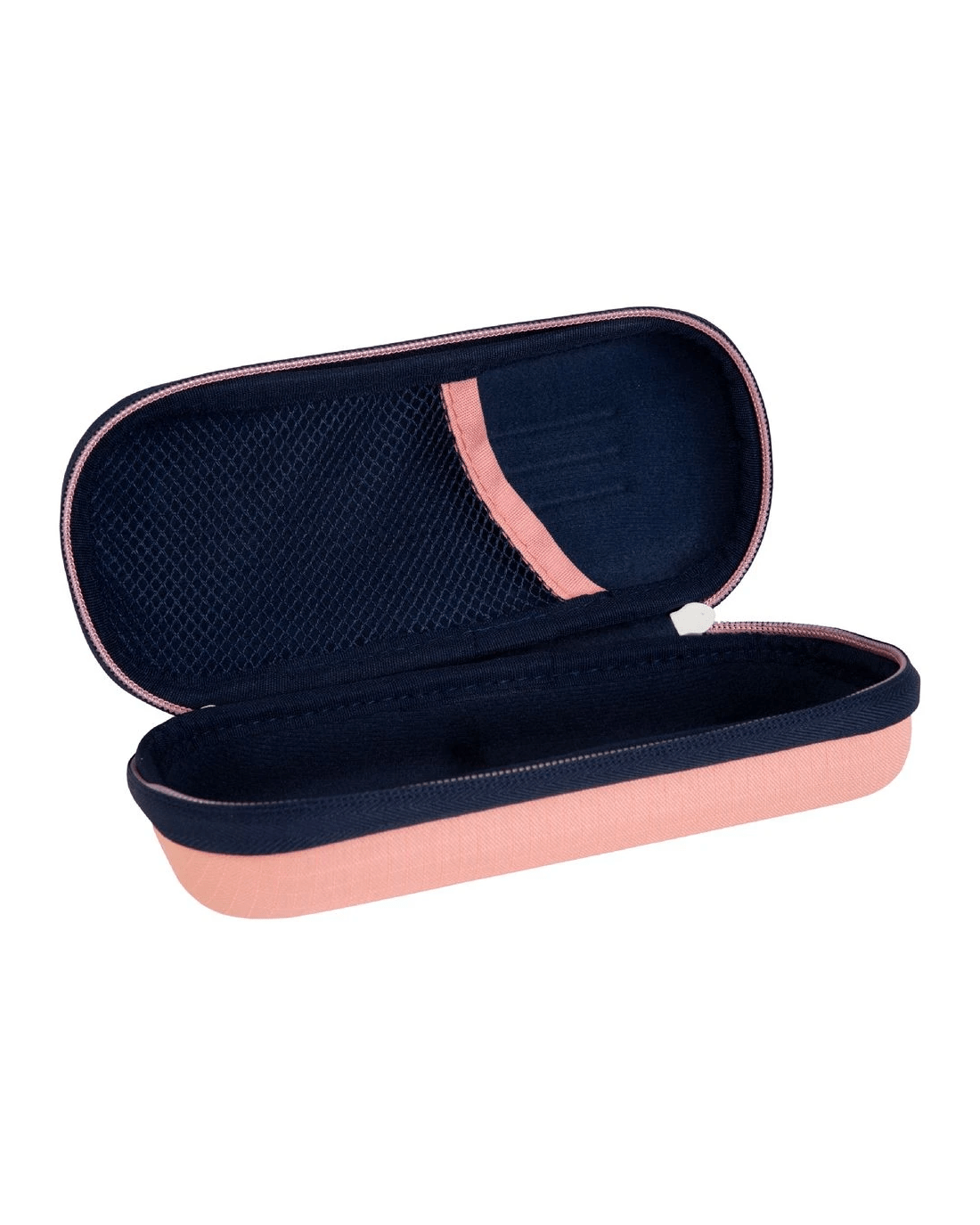 - The pencil case comes in a salmon design.