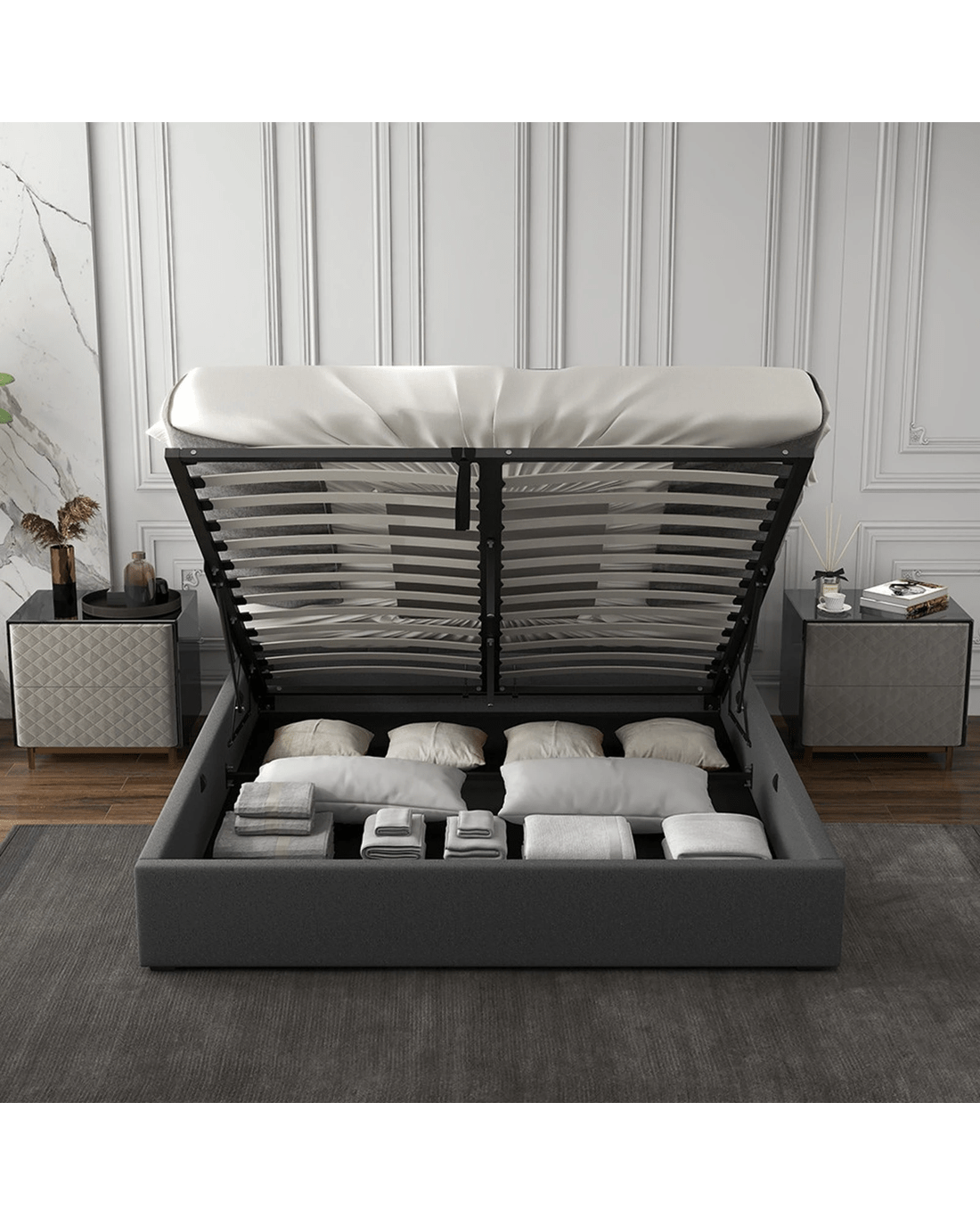 Maximise space and add style to your bedroom with the Milano Decor Capri Luxury Gas Lift Bed Frame with Headboard.