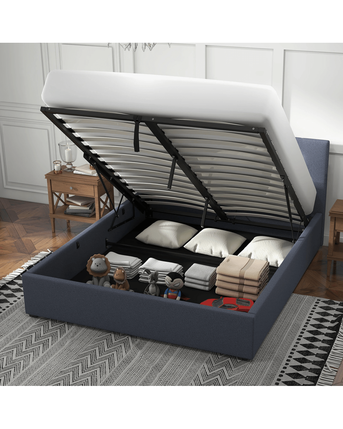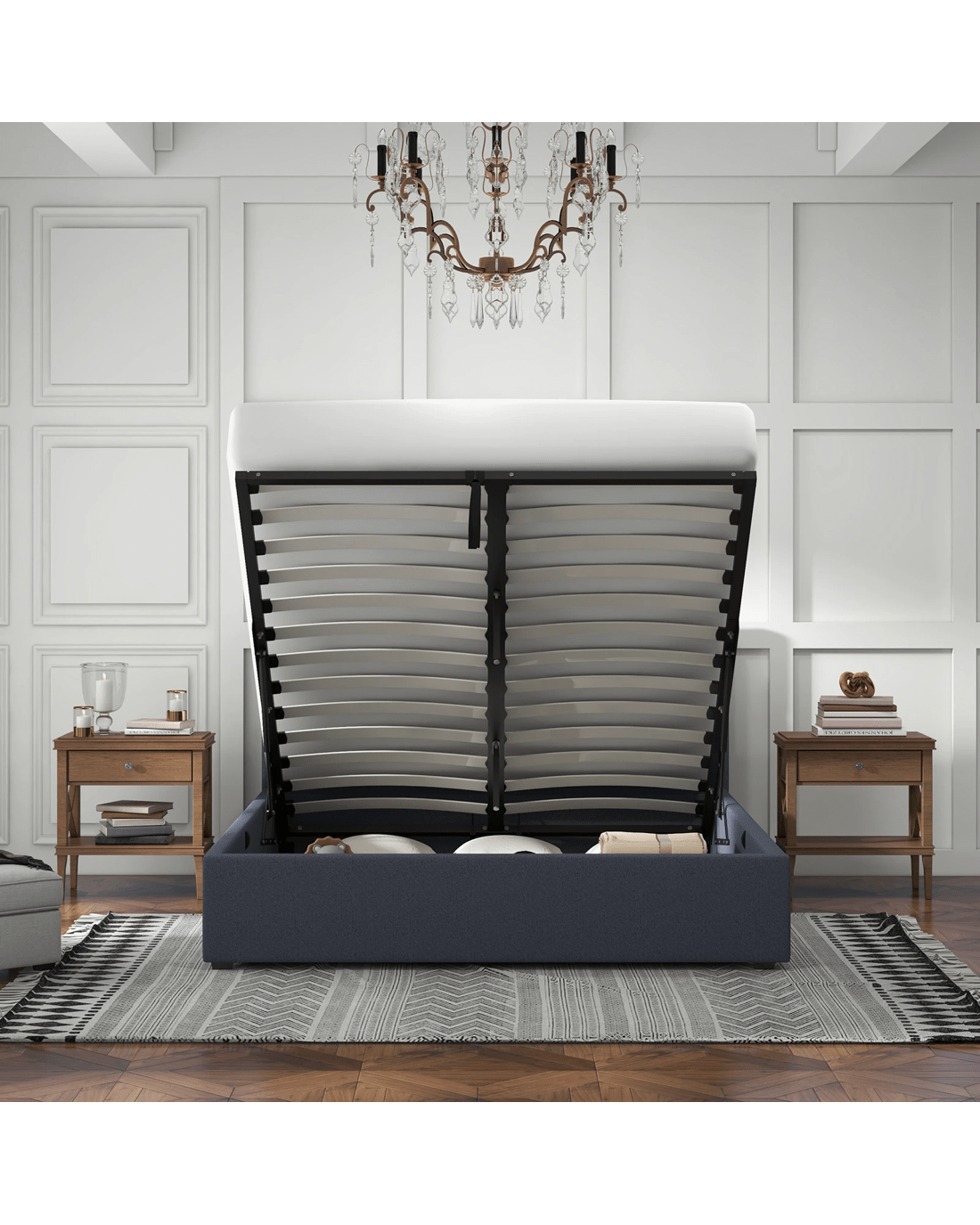 Gas-lift function provides easy access to under-bed storage