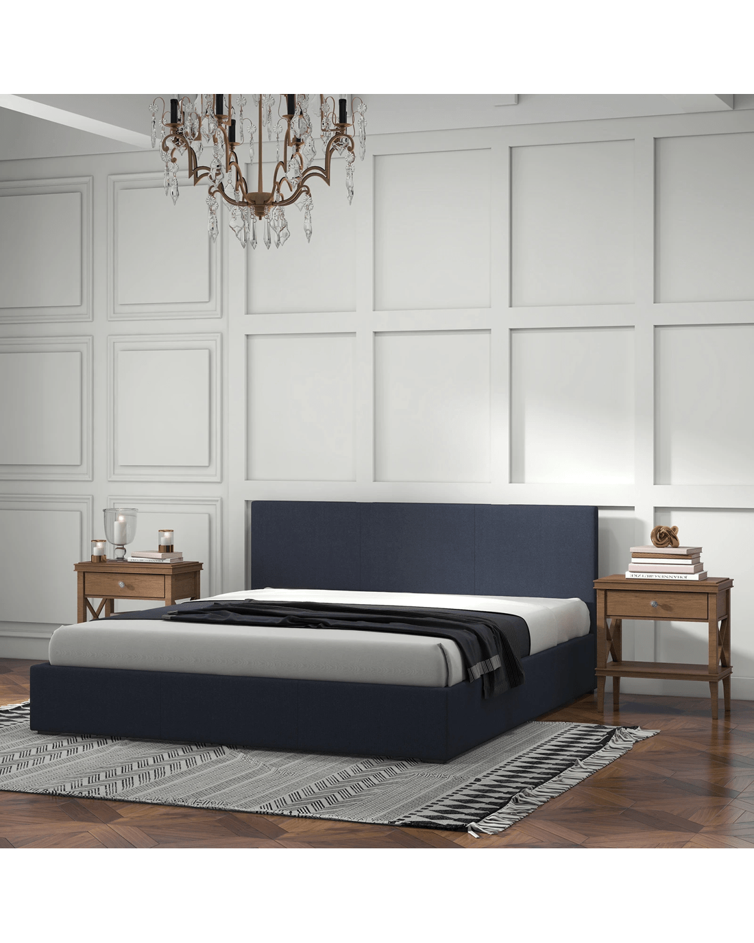 Strategically placed wooden slats provide support and stability, while floor protectors add convenience.
