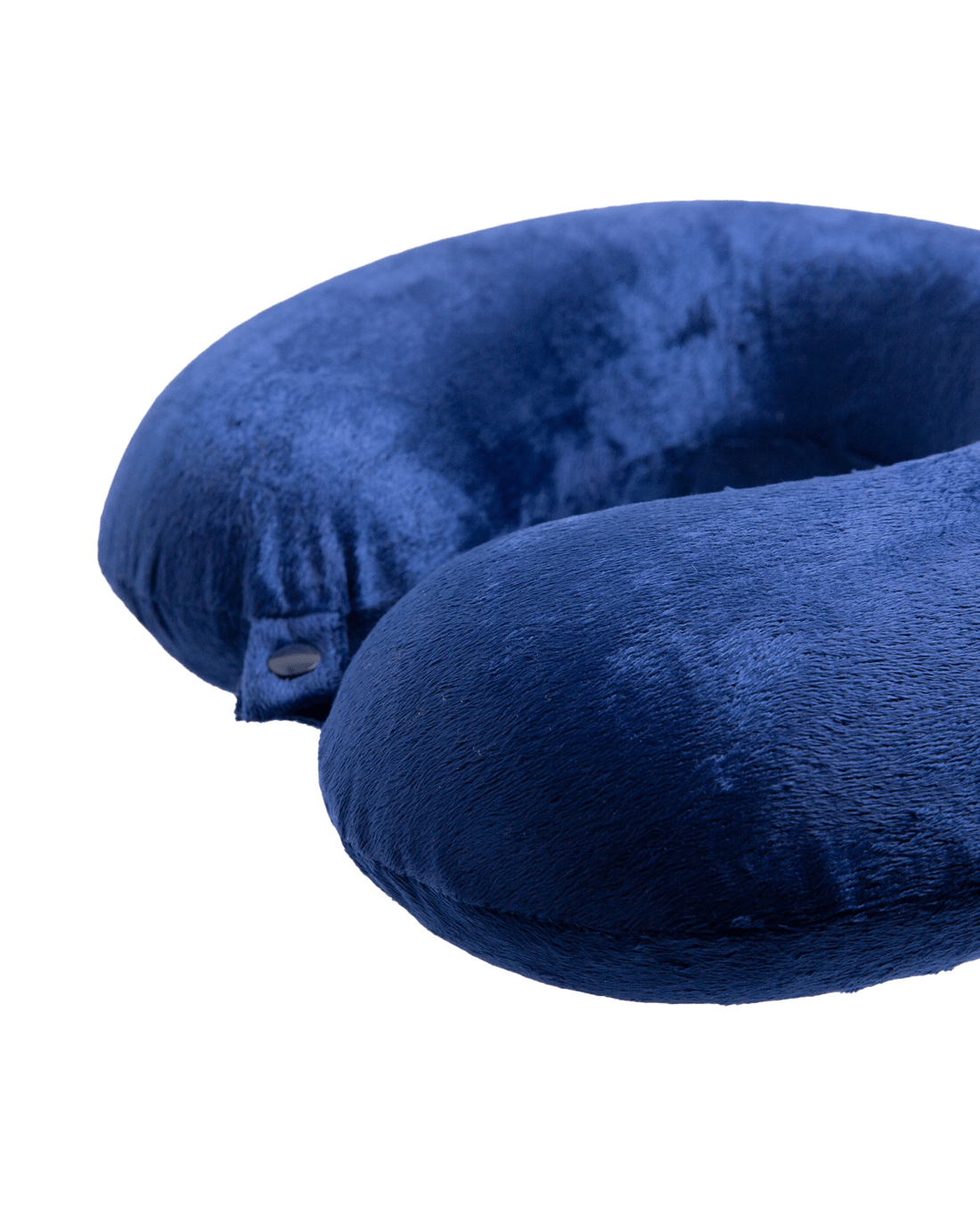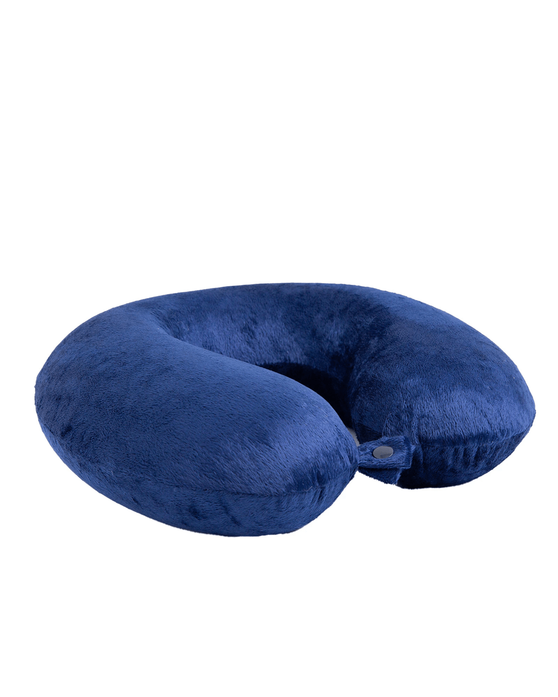 This travel neck pillow evenly distributes pressure with its memory foam fill that retains its shape and moulds to your neck, head, and shoulders. It also has a plush polyester cover and has an in-built button clip to keep the pillow in place for convenience.