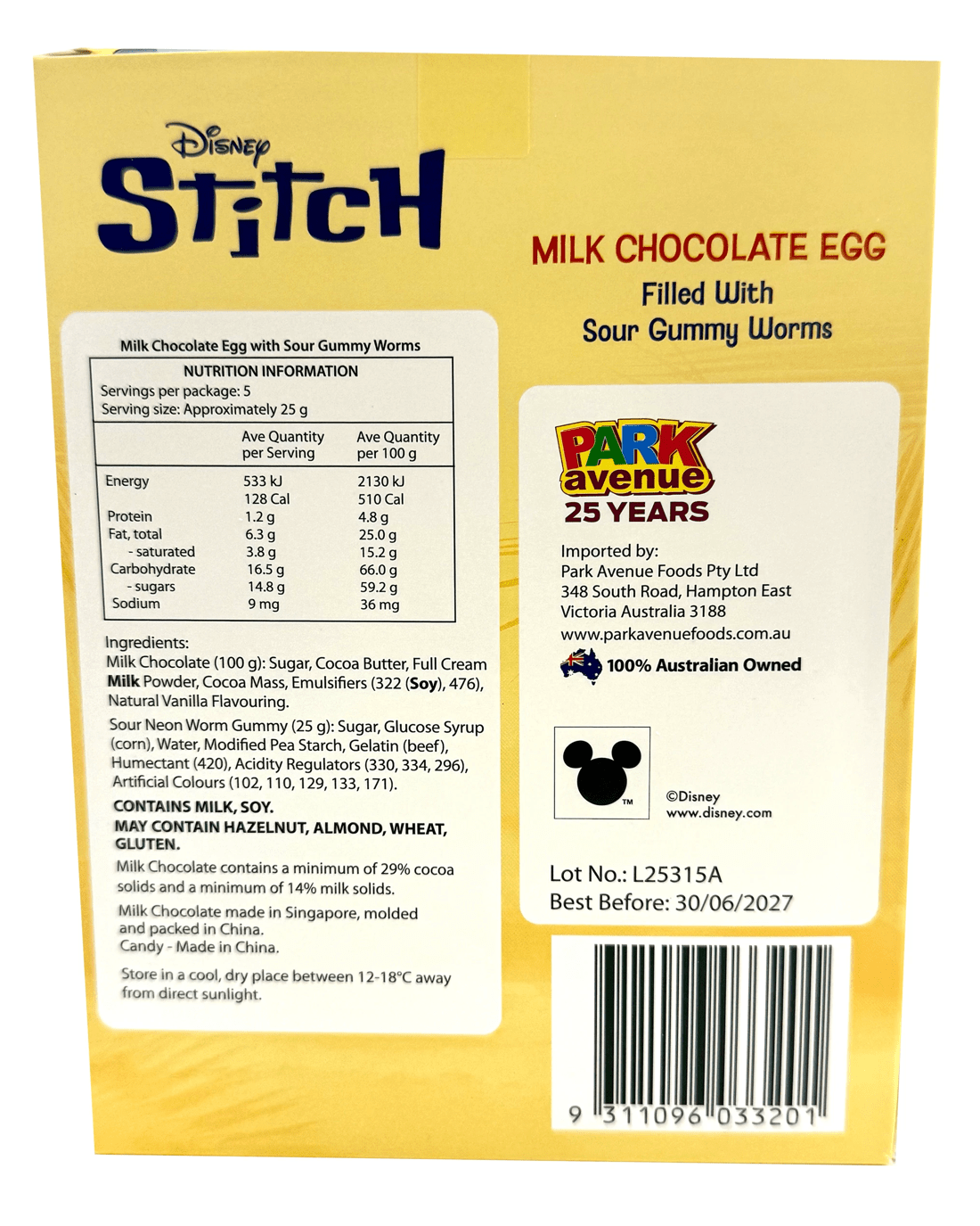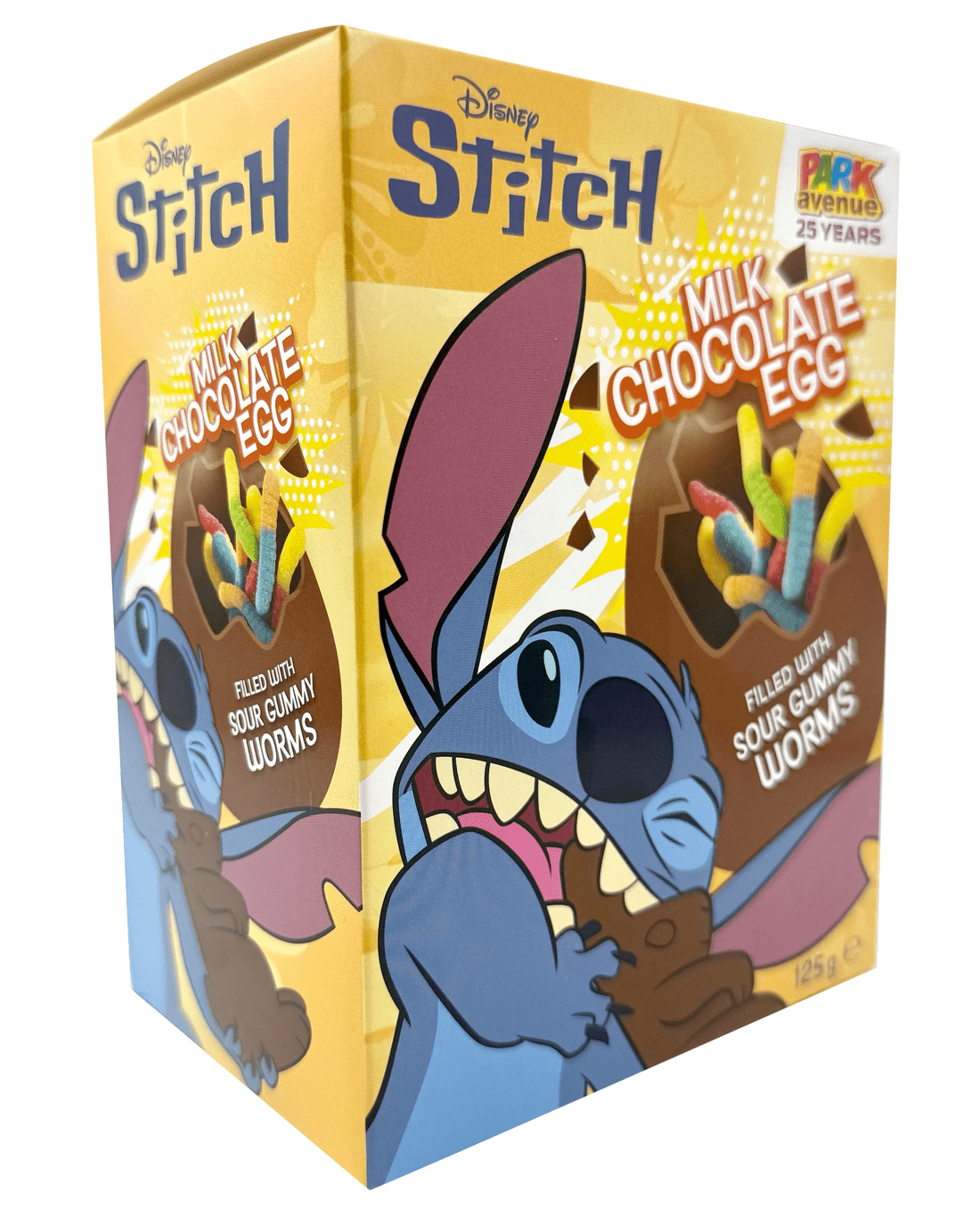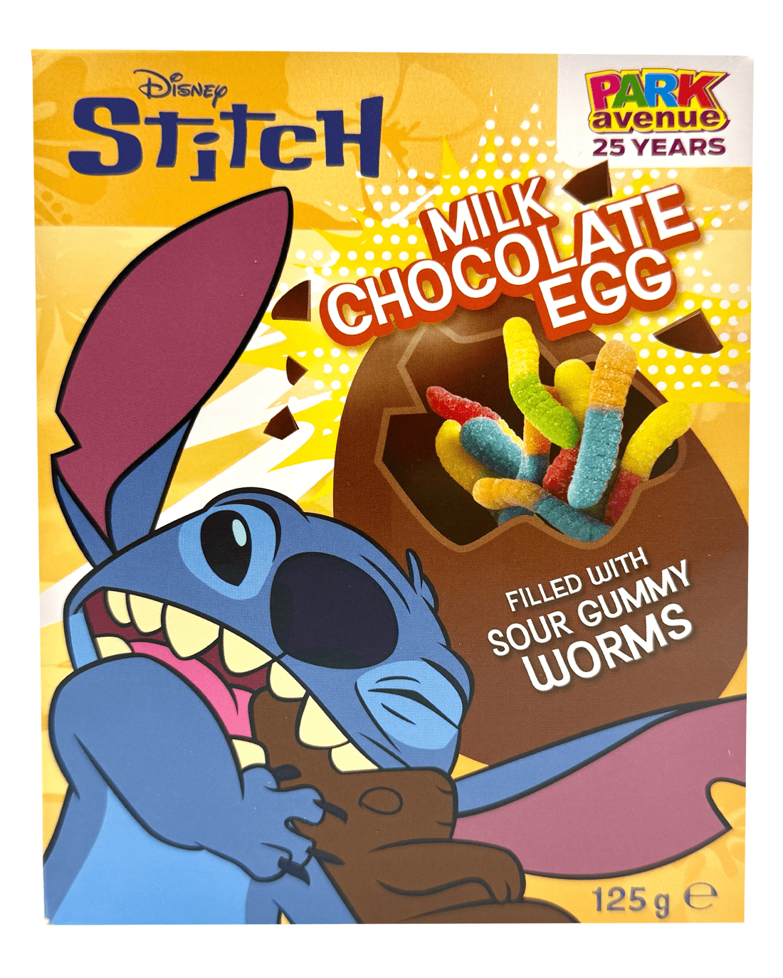 *Each sold separatelyA creamy milk-chocolate Easter egg hides a wriggly surprise - tangy sour worm gummies bursting with bold flavour. Crack it open for a sweet-and-sour thrill in every bite! Available in Stitch and Spider-Man varieties.