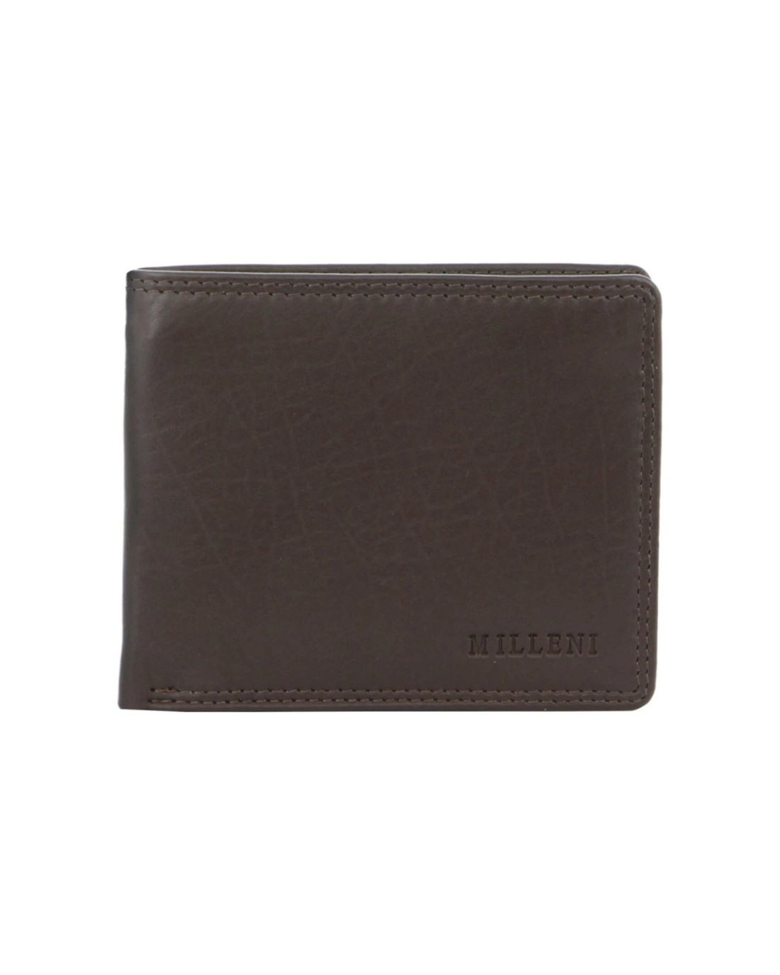 Milleni Mens Leather RFID Protected Card Cash Flat Wallet Secure Clasp Compact Design 10cm - Brown