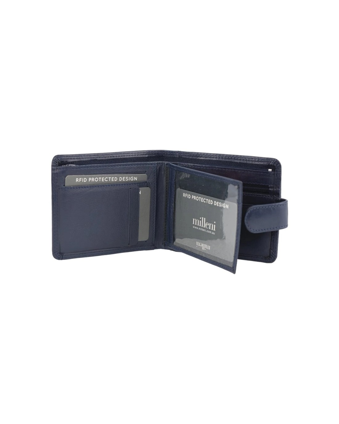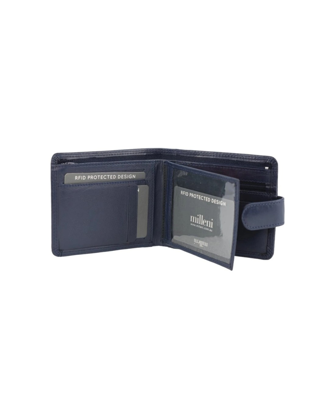 Milleni Mens Leather Tab Cash Card RFID Protected Wallet Secure Clasp Closure 12cm - Blue