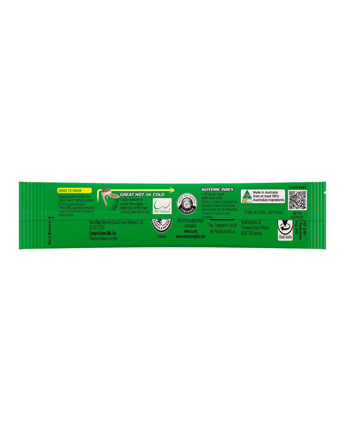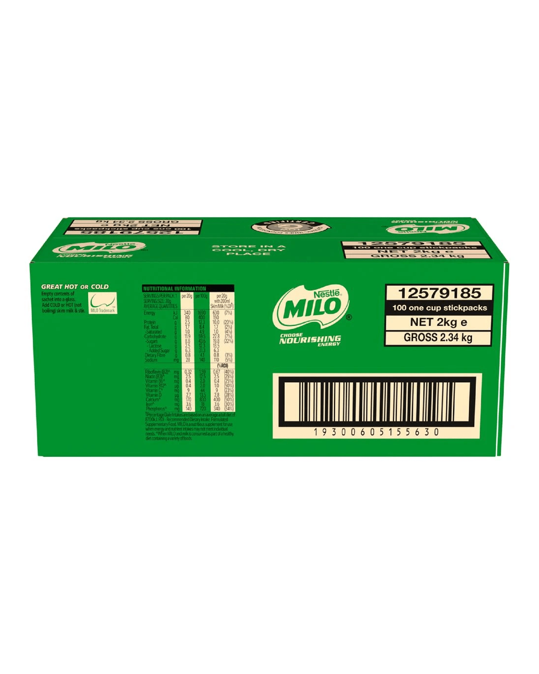 Stock up the pantry with these Milo Sachets. Each 20 g sachet provides the core for a mouth-watering chocolate drink that you can enjoy in a hot or cold manner. This a 100 pack, making it great to enjoy at work with teammates, or at home with loved ones.