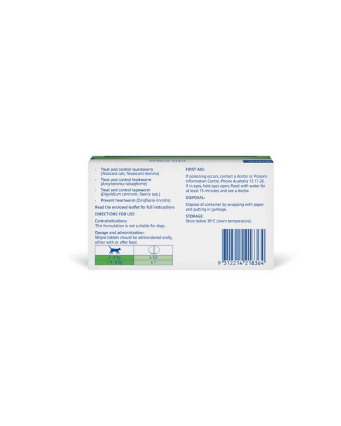 Milpro Broad Spectrum Allwormer for Cats (2–8kg)