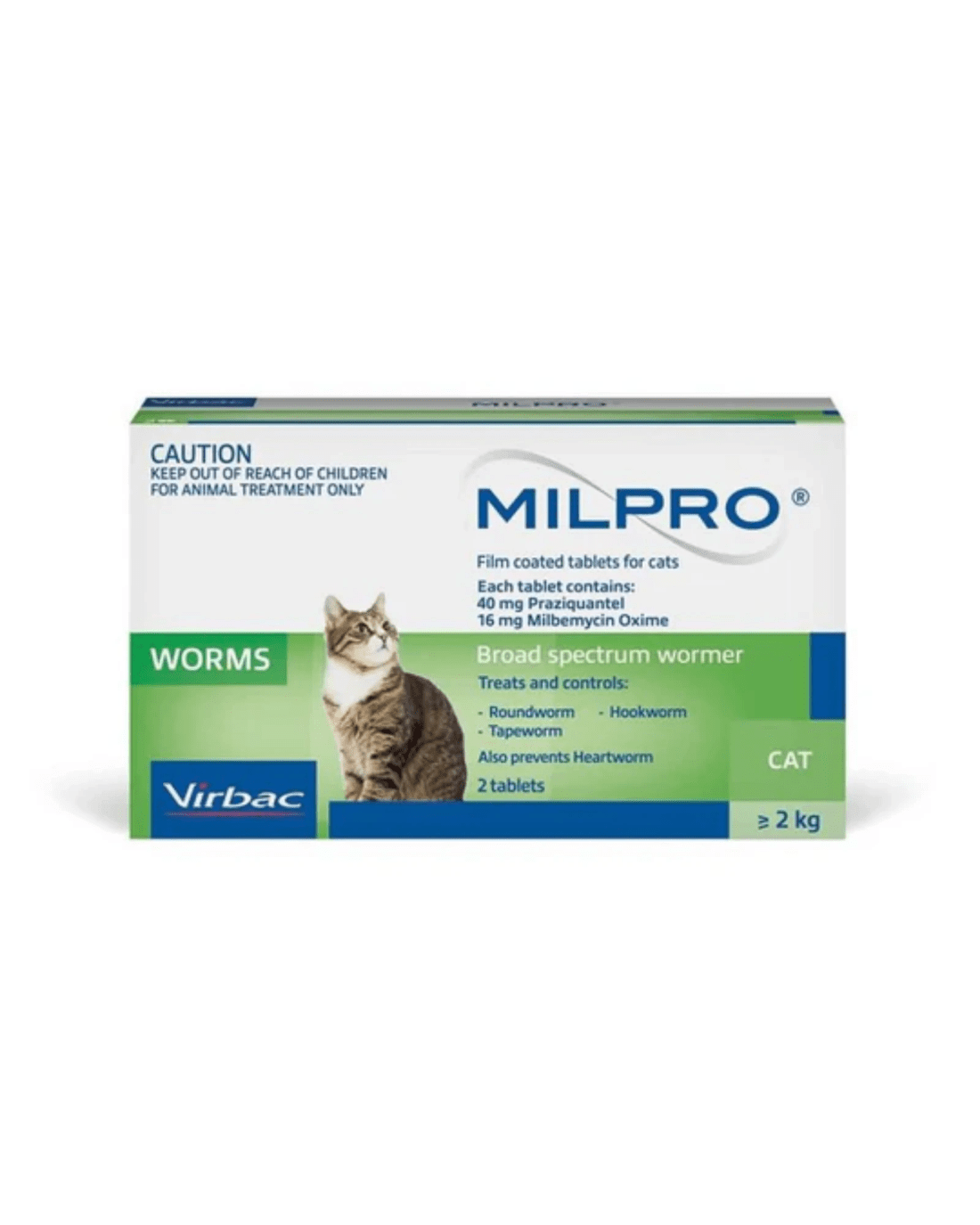 Milpro is a trusted, broad-spectrum worming tablet designed to protect cats against intestinal worms and heartworm. Produced by Virbac, Milpro offers safe, effective, and easy parasite control with a tasty liver-flavored coating that cats love.