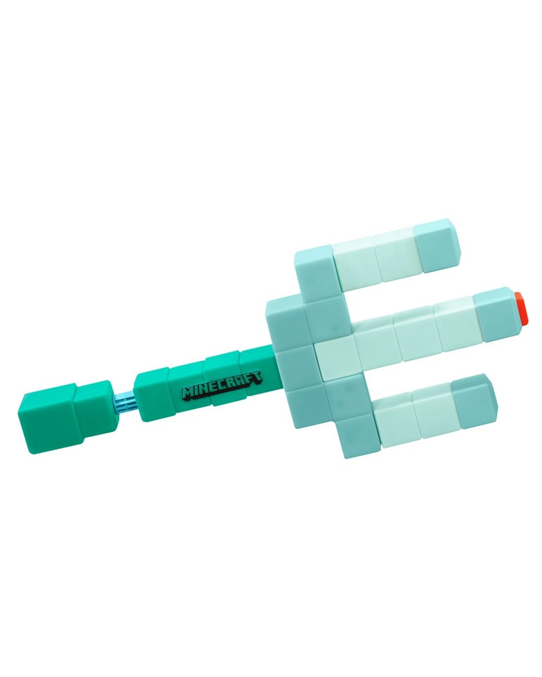 The Nerf Super Soaker Minecraft Trident water blaster takes its inspiration from Minecraft, capturing the look of the trident used in the game. In the game, tridents are rare items, only found in the hands of a few disheveled, damp drowned, and the heroic adventurers that defeat them! Imagine yourself as one of these heroes with this Nerf water blaster.