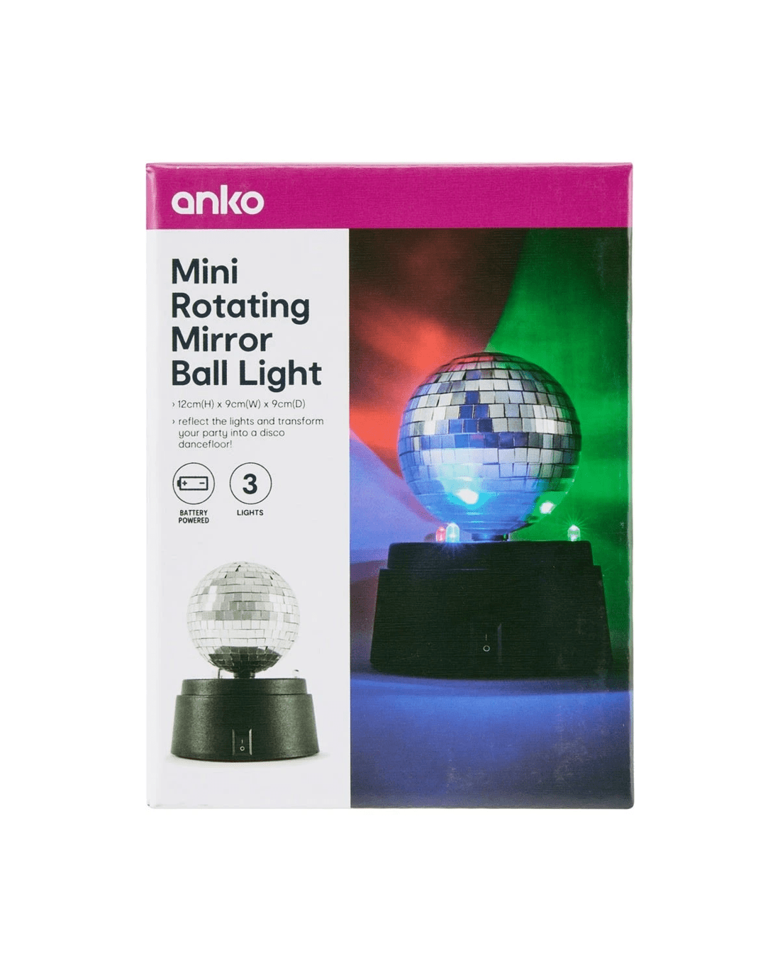 Bring the party to life with this Mini Rotating Mirror Ball Light. This disco ball light rotates to reflect light in all directions, making it the perfect party light for creating a classic mirror disco ball effect.