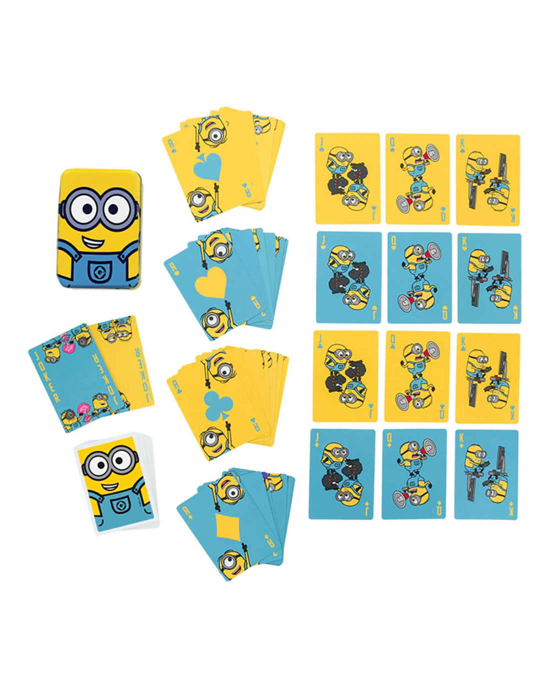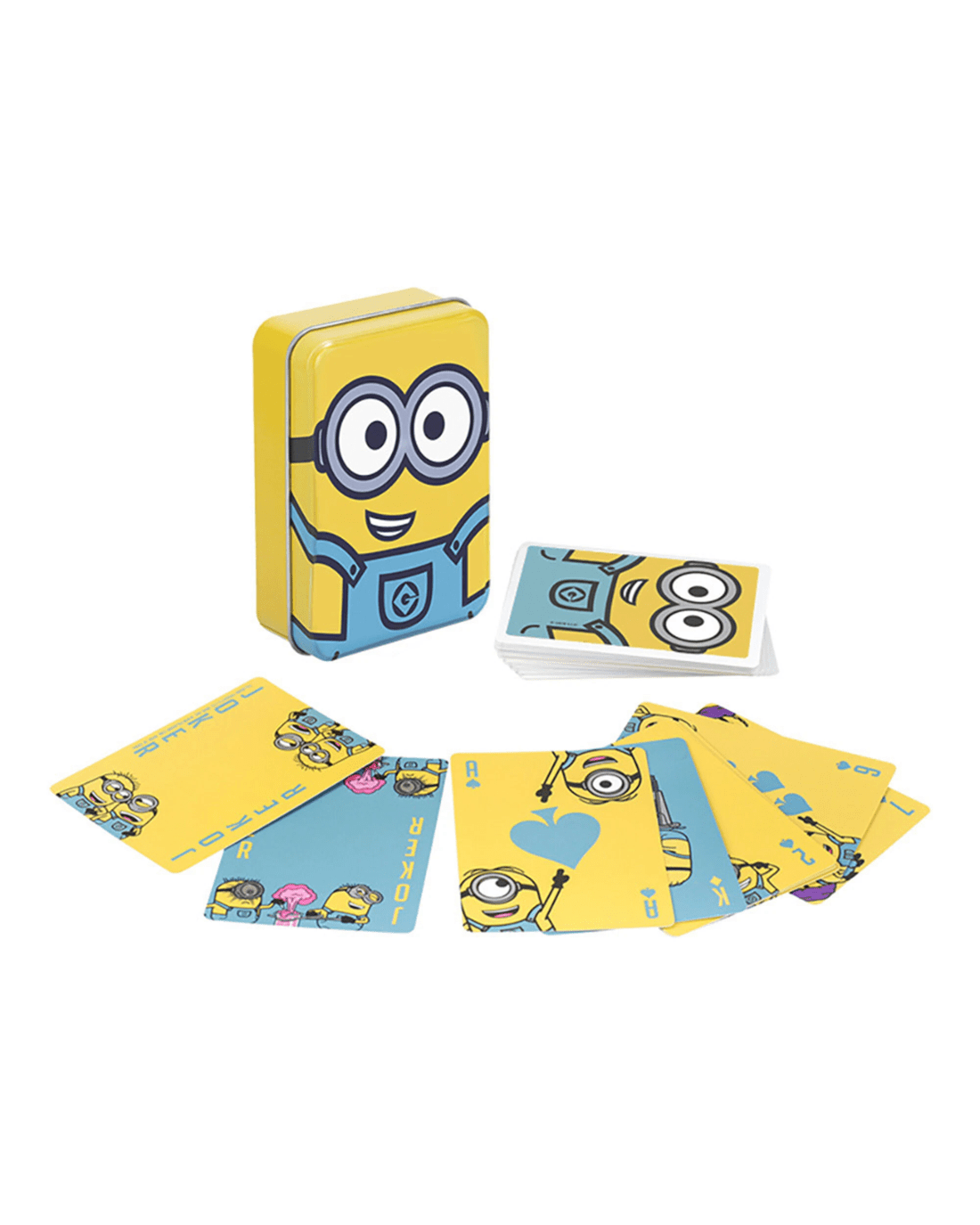 Supplied in a handy metal tin, your favourite characters bring these playing cards to life! Whether it be Kevin, Stuart or Bob, these cards are filled with their mischievous antics and expressions, turning your regular deck of cards into a deck of fun!
