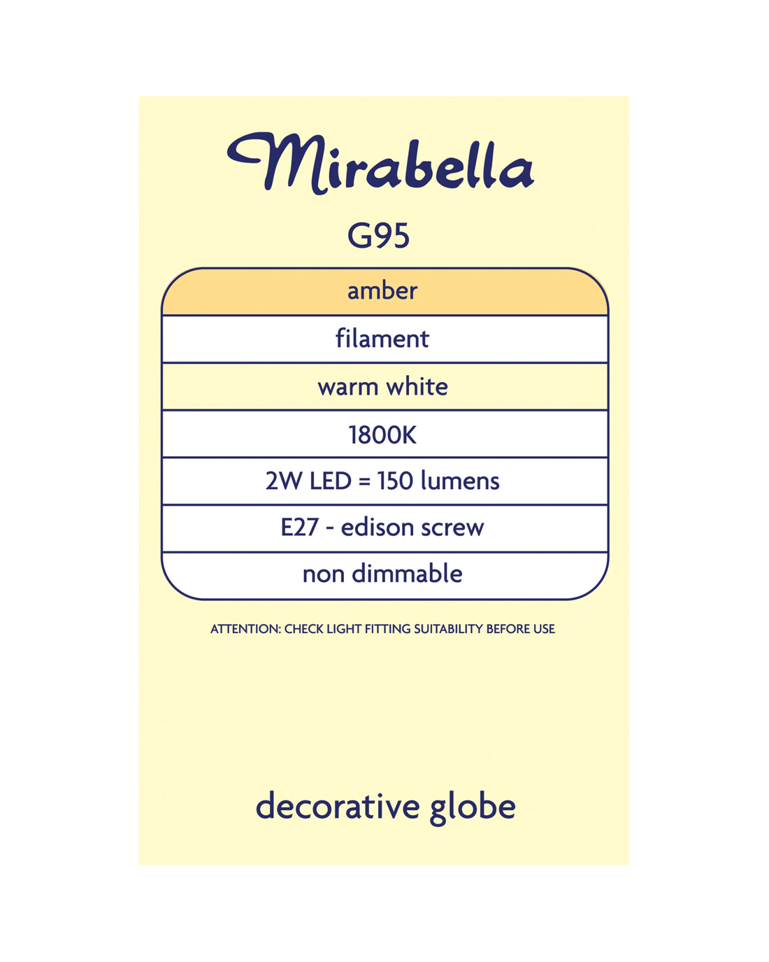 Mirabella E27 G95 2W Vintage Style Filament Amber Bulb