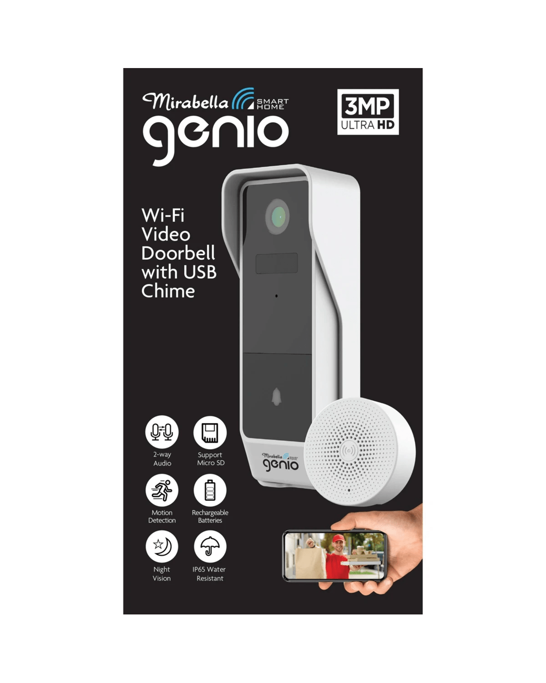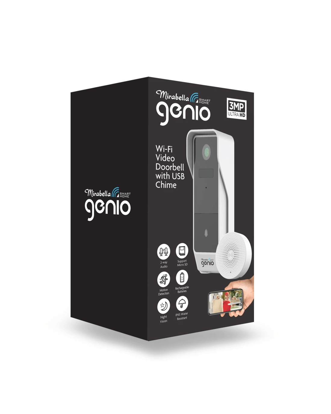 This smart video doorbell allows you to see, hear and speak to the visitor at your door whether you're at home, at work, or on the go. The video doorbell is controllable with the Mirabella Genio App on your Smart Phone. Mirabella Genio App available from the App Store or Google Play.