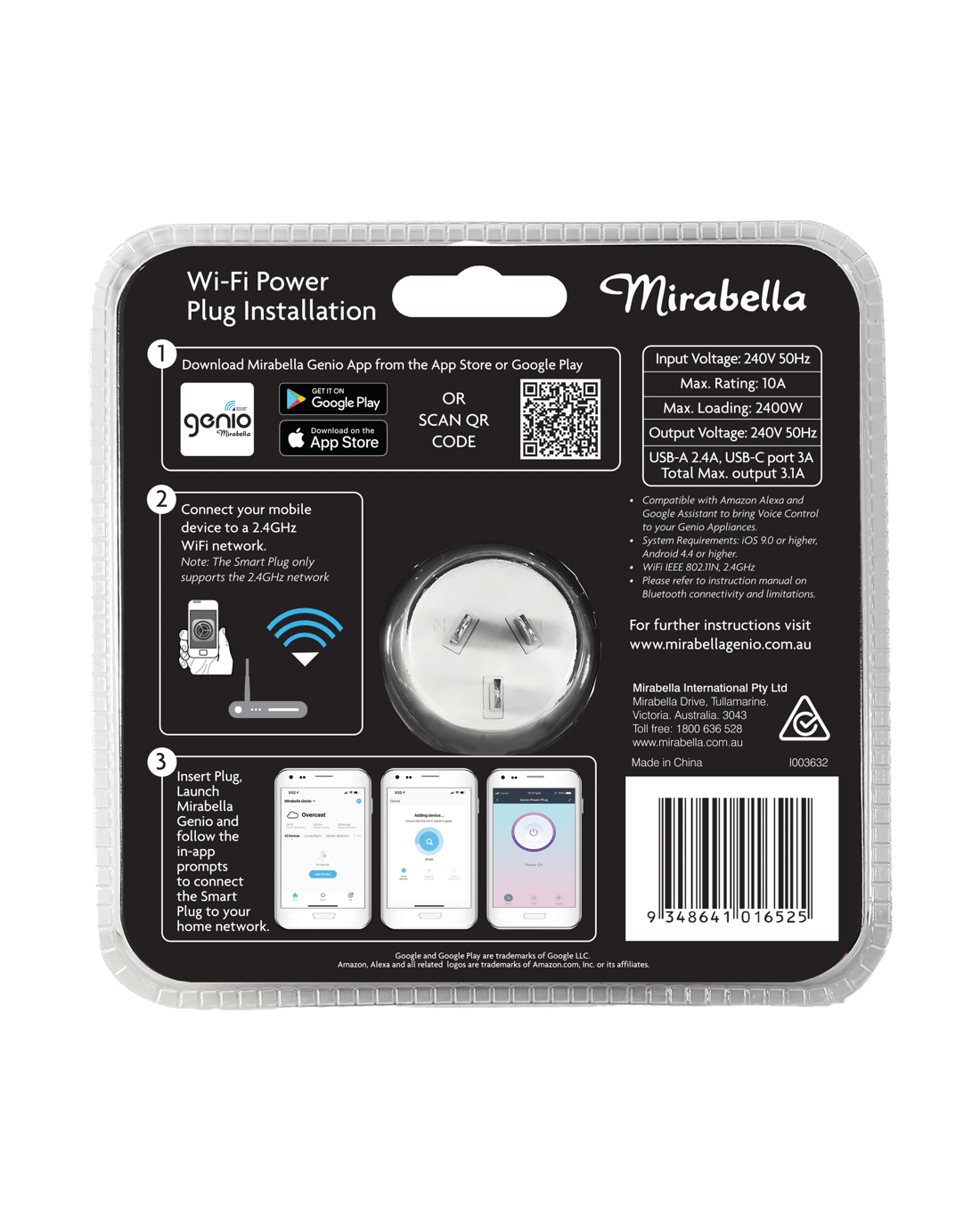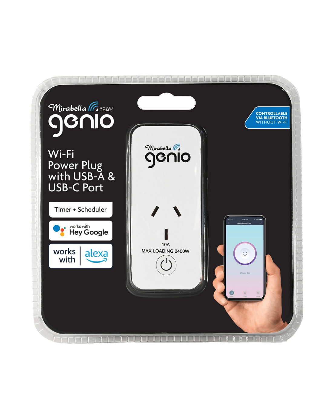 Mirabella Genio Wi-Fi Power Plug with USB-A & USB-C Port includes Timer & Scheduler Function