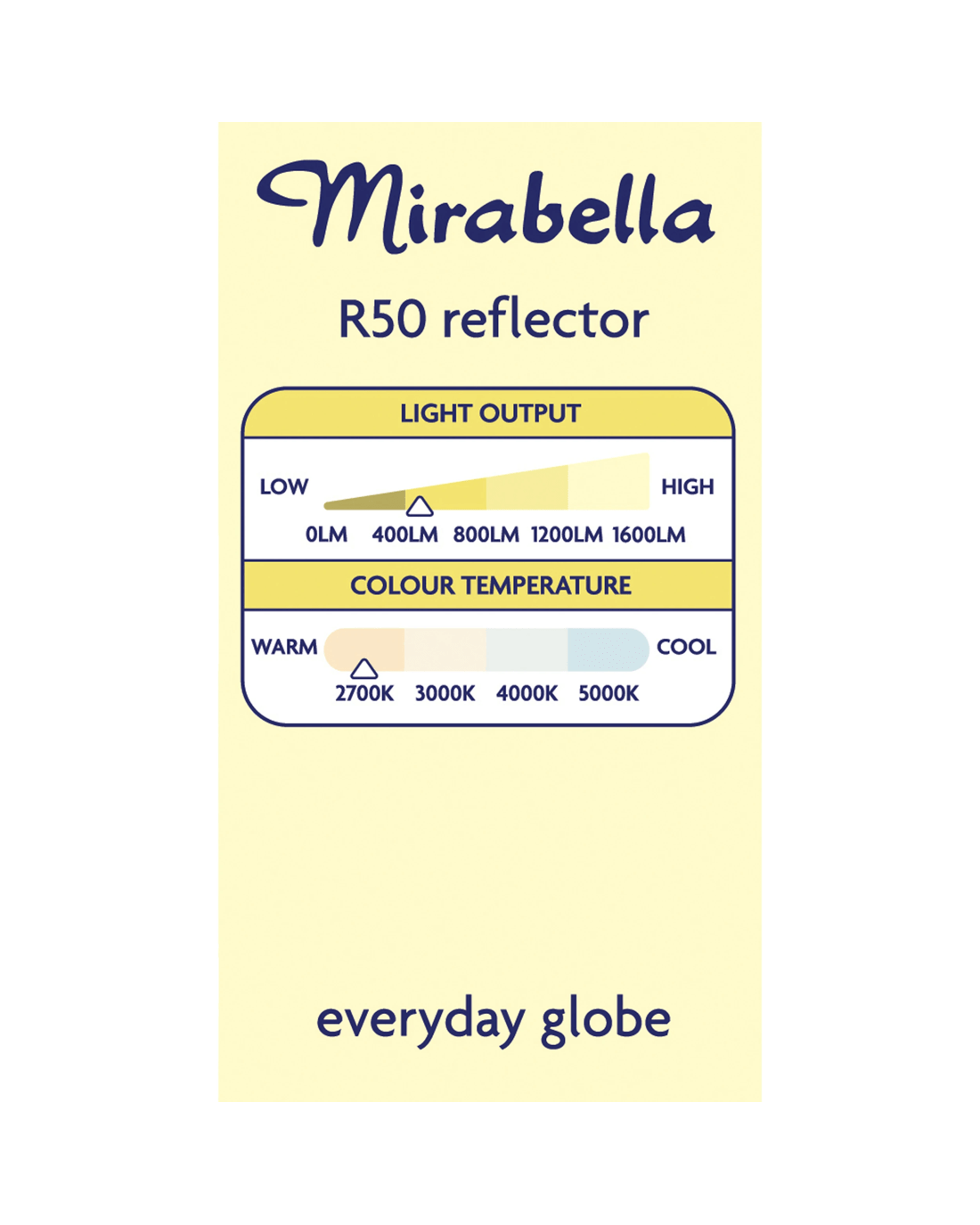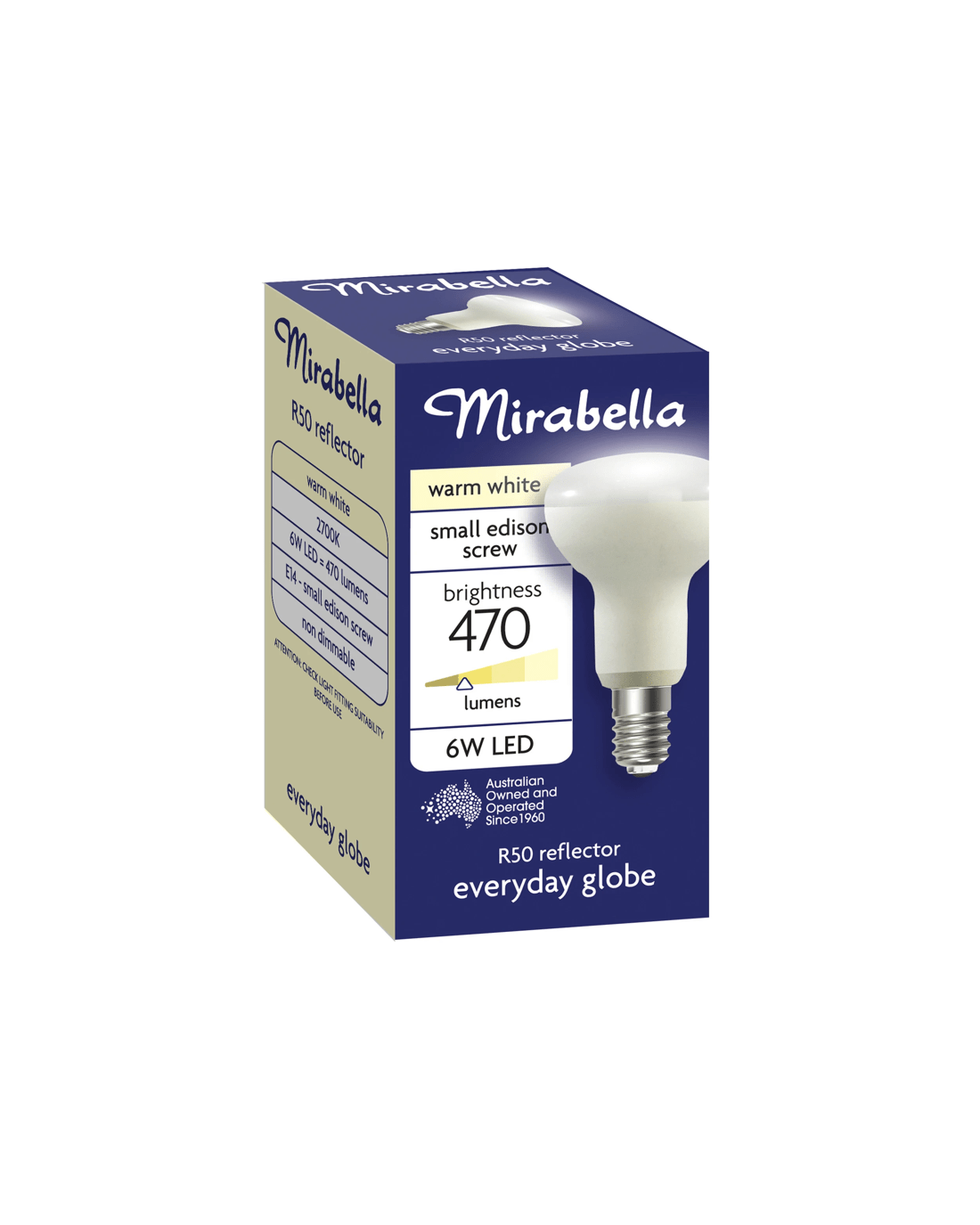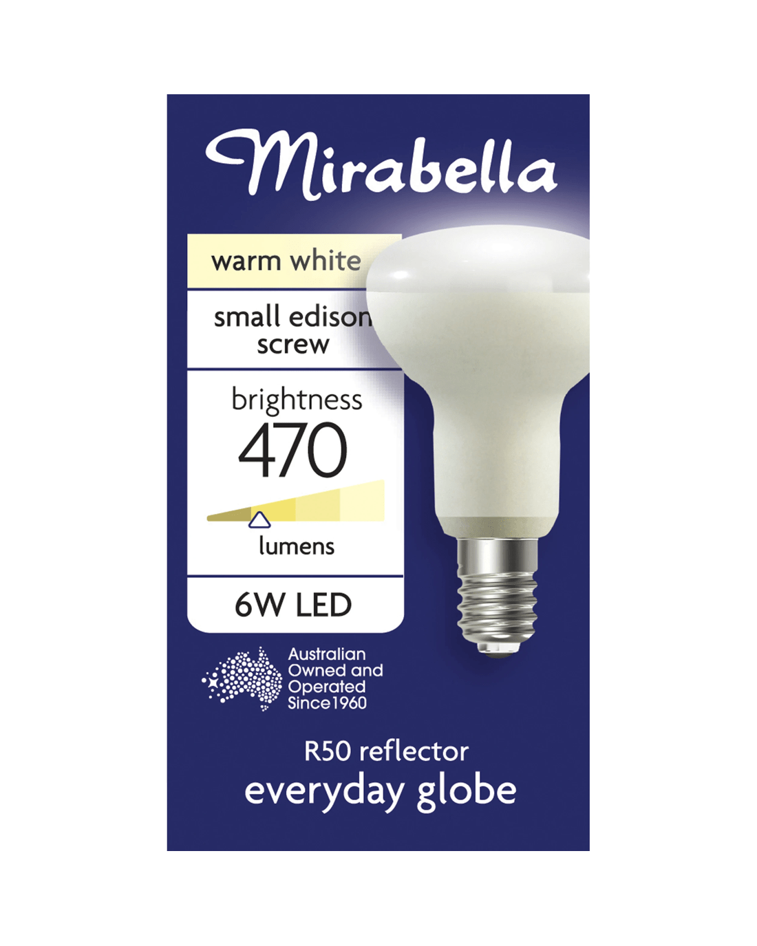 When it comes to lighting, Mirabella has been lighting up Australia since 1960, so light up your home with this LED R50 light globe available in warm white, which is perfect for creating a warm and cosy feel in any room.