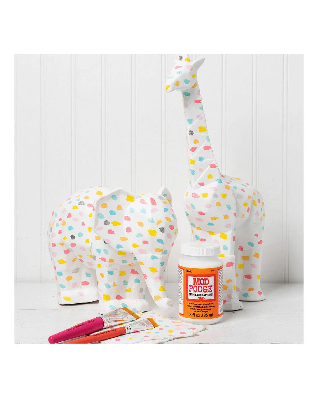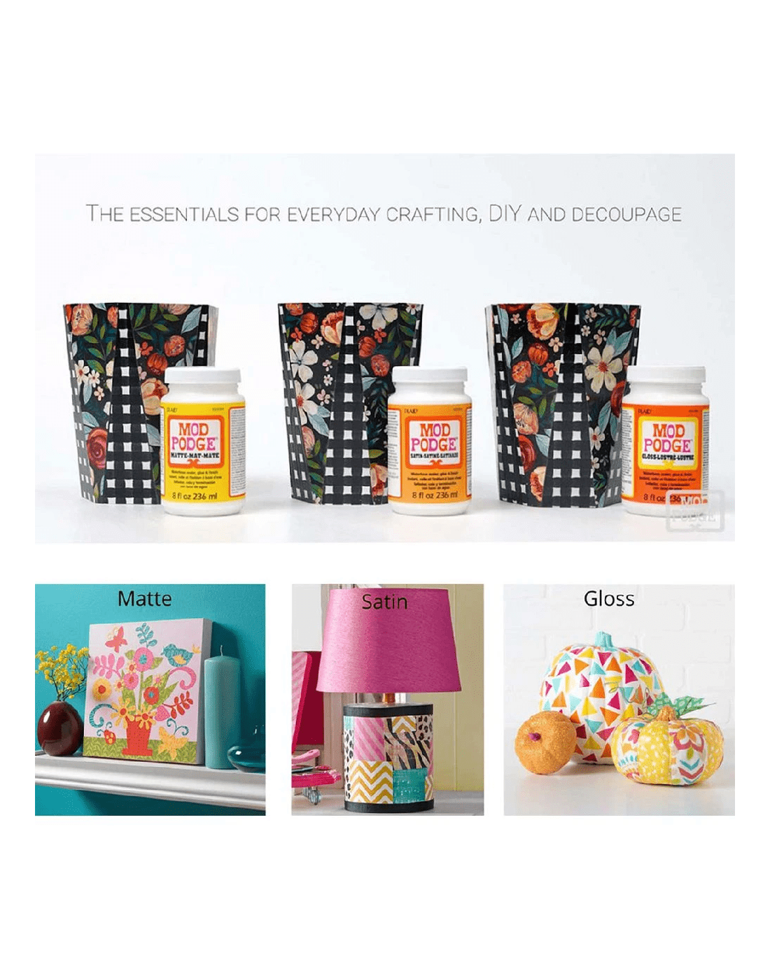 Preserve the beauty of your decoupage paper projects and more with this Mod Podge Satin sealer glue and finish. It's quick-drying and dries clear, leaving a smooth, satin finish. Plus, you can use this decoupage glue to create decoupage tissue paper projects as well as projects using wood, fabric, plastic, and canvas.