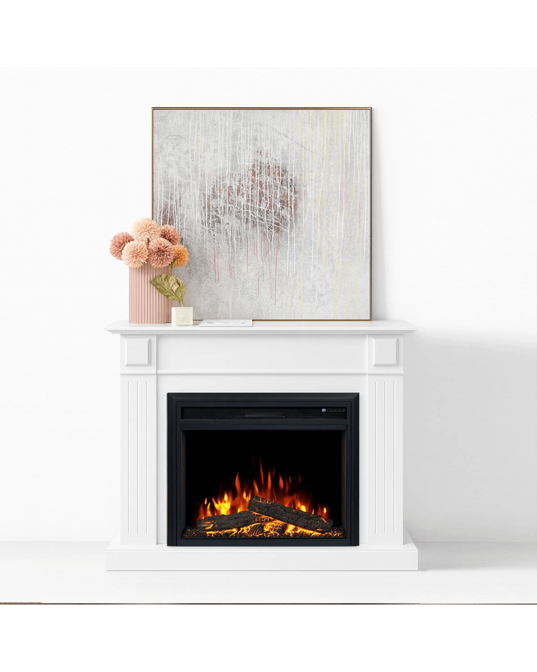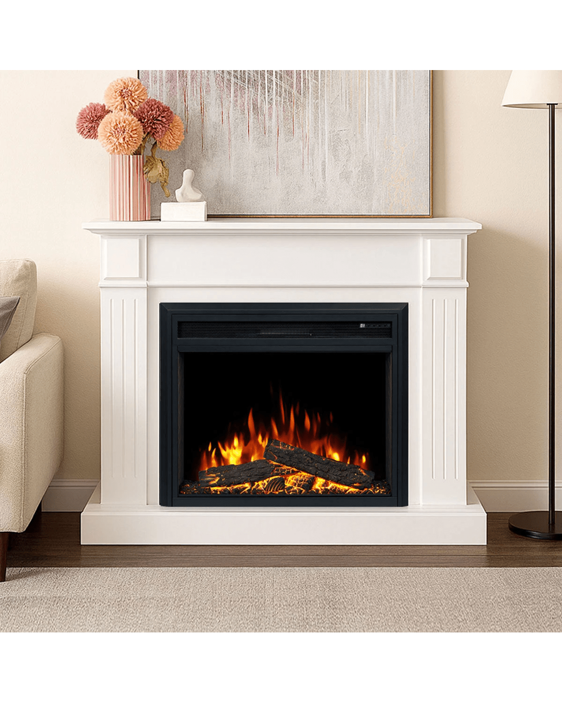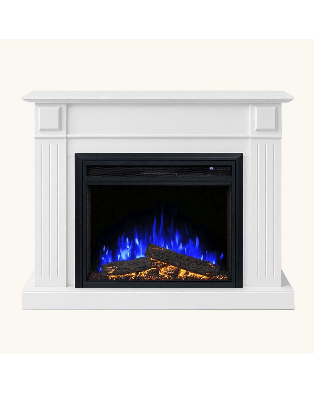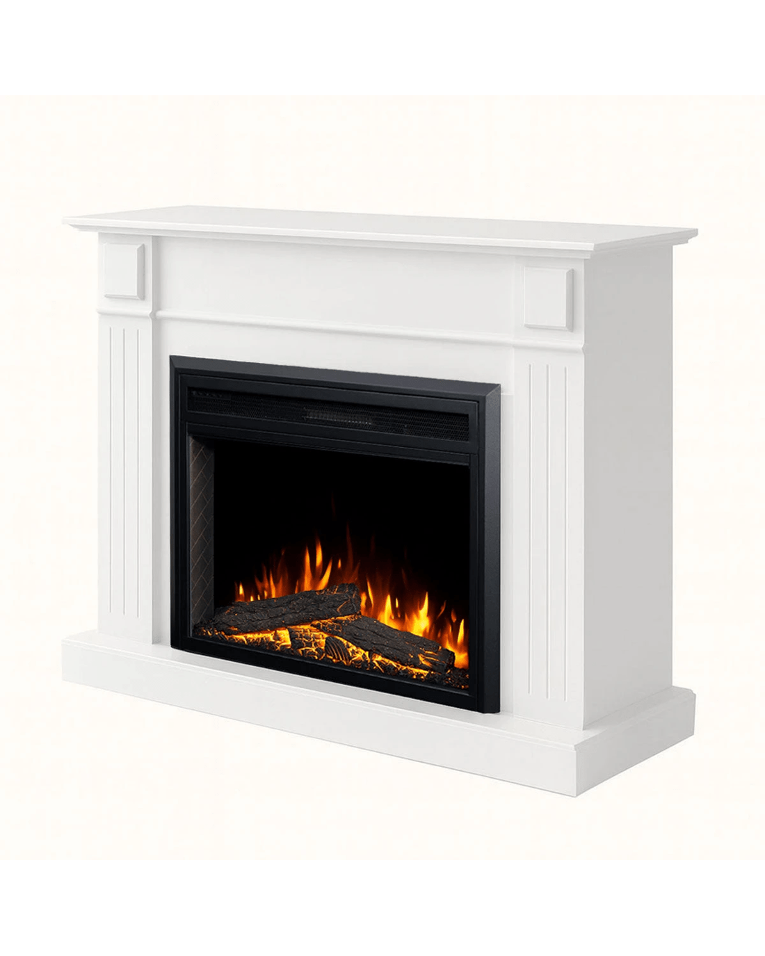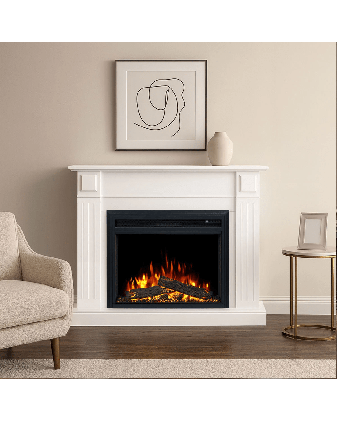 Elevate your living space with the Berwick Electric Fireplace Suite, featuring a beautifully crafted white mantel paired with the 30" New Moonlight insert. Enjoy a larger and clearer flame display with 6 flame colours, adjustable ember bed lighting, realistic resin logs, flame speed control, and smartphone app operation. With efficient heating and customisable ambience, this suite adds both warmth and timeless charm to your home.