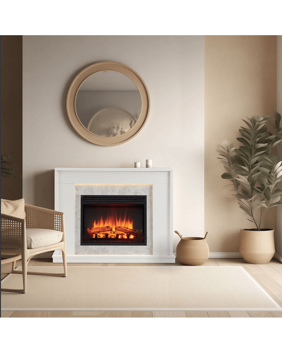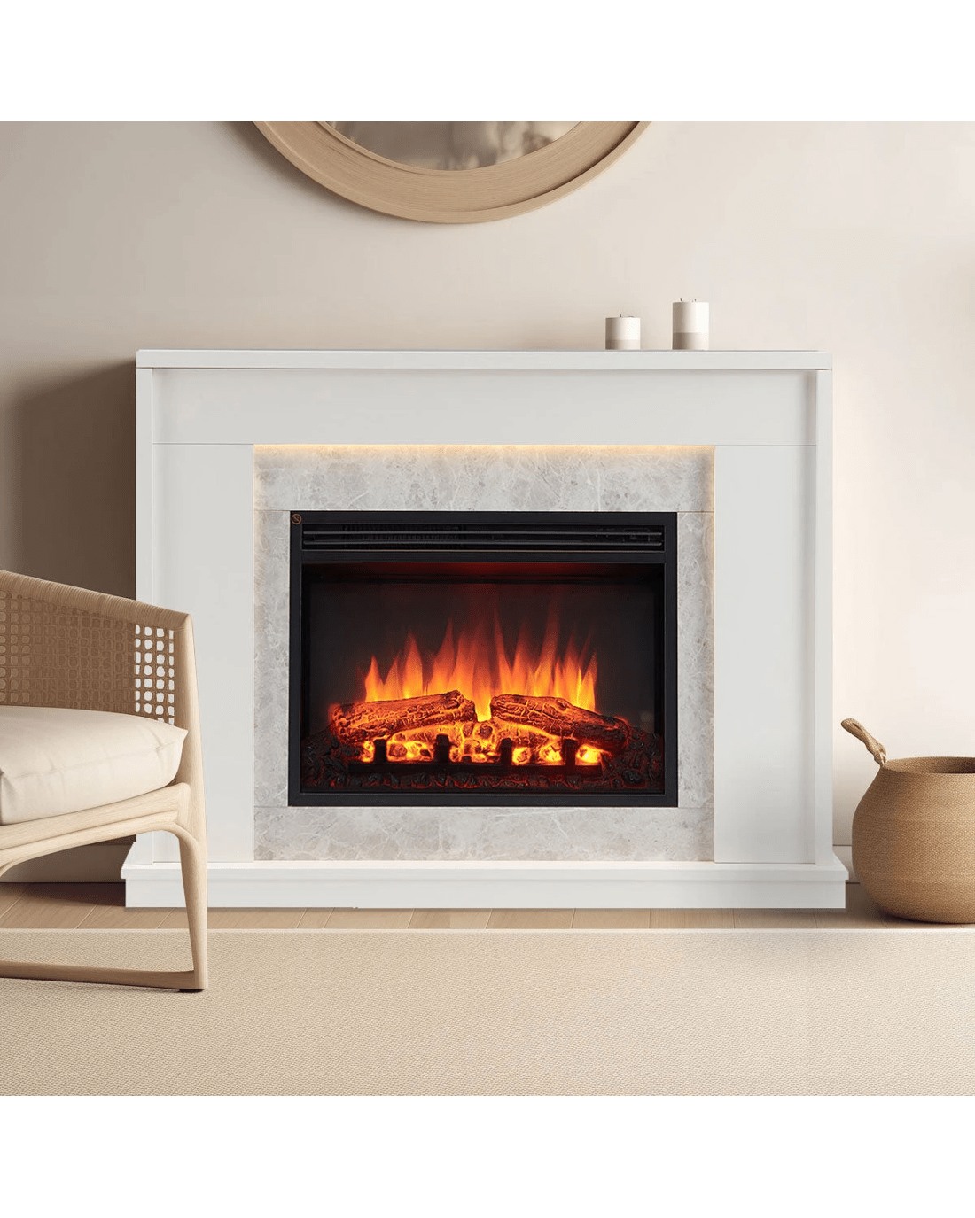 Jade Electric Fireplace Heater White Mantel Suite with 23 inch Stella Insert (SKU: EFRC378AC-MTW-SET)