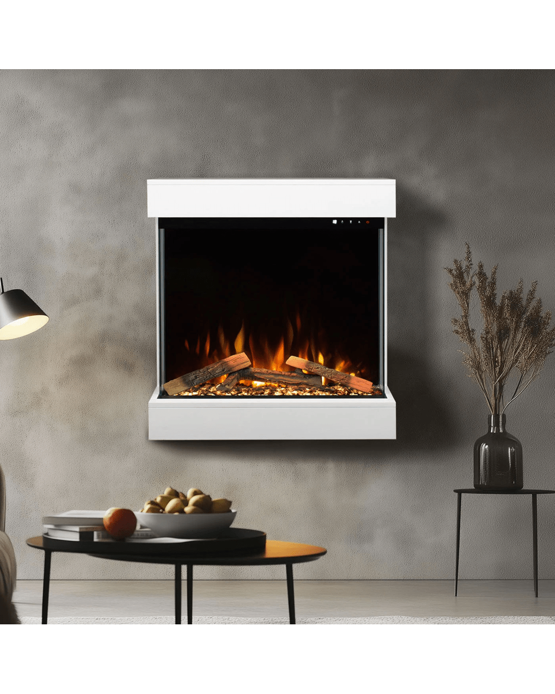 Moda Living Legato Floating 3-Sided Wall Mounted Electric Fireplace - White
