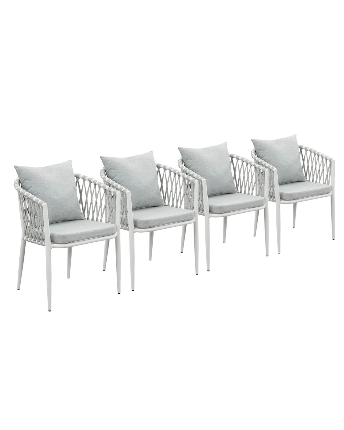 Moda Living Mornington White Aluminium Outdoor Dining Chairs with Arms - Light Grey Cushion (Set of 4) - White
