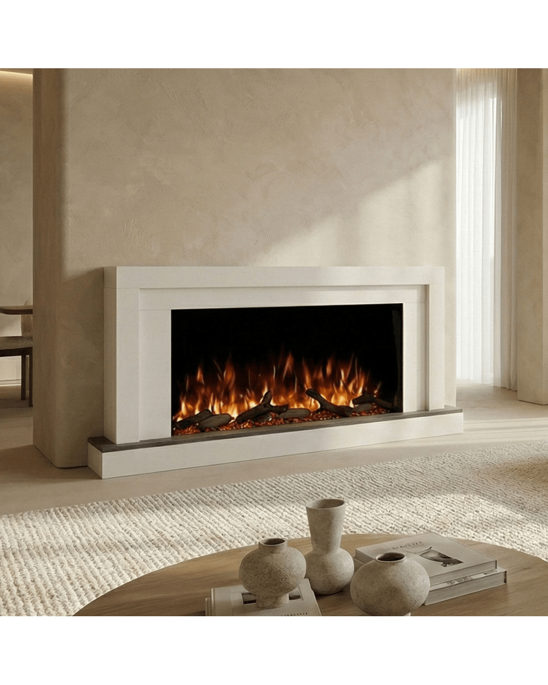 - Fireplace Colour: Soft White (Warm White finish) with Black Firebox