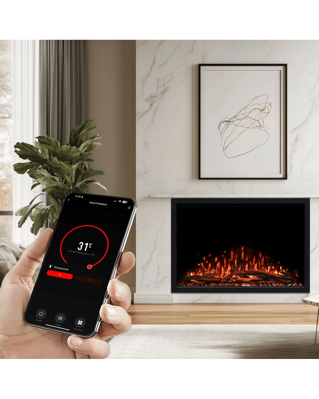 The Nova Series is our premium electric fireplace line, thoughtfully designed for those who appreciate refined aesthetics, realistic flame visuals, and smart functionality. Featuring ultra-slim borders and a hidden front vent tucked discreetly into the recessed upper glass edge, Nova sets a new benchmark in minimalist fireplace design.