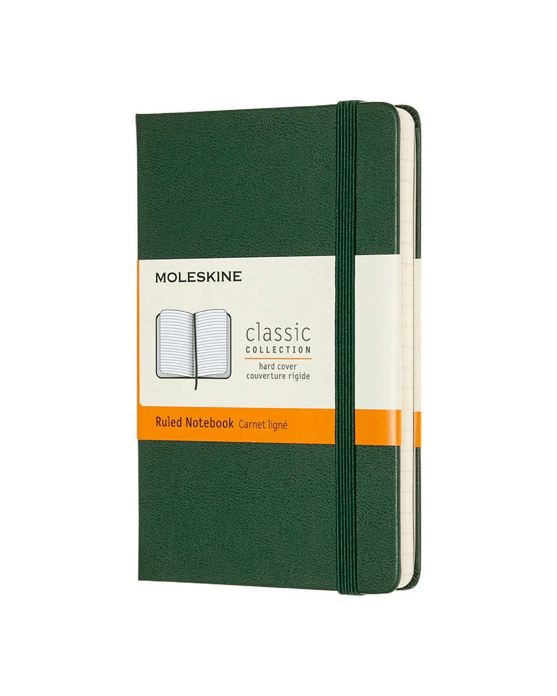 The Moleskine Hard Cover Notebook offers a great solution for conveniently writing down notes, lists and memos wherever you are, thanks to its pocket size. It's thread-bound and has a hard cover with rounded corners, acid-free paper, a bookmark, an elastic closure and an expandable inner pocket for storing loose papers. It is pre-ruled so that you can start writing straight away.