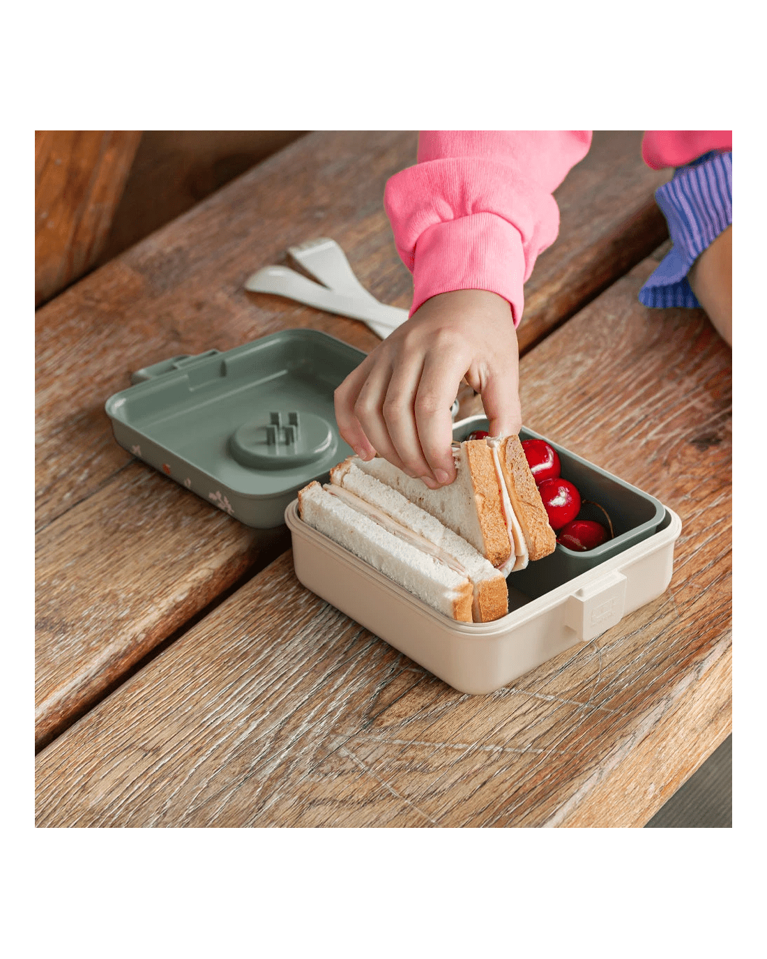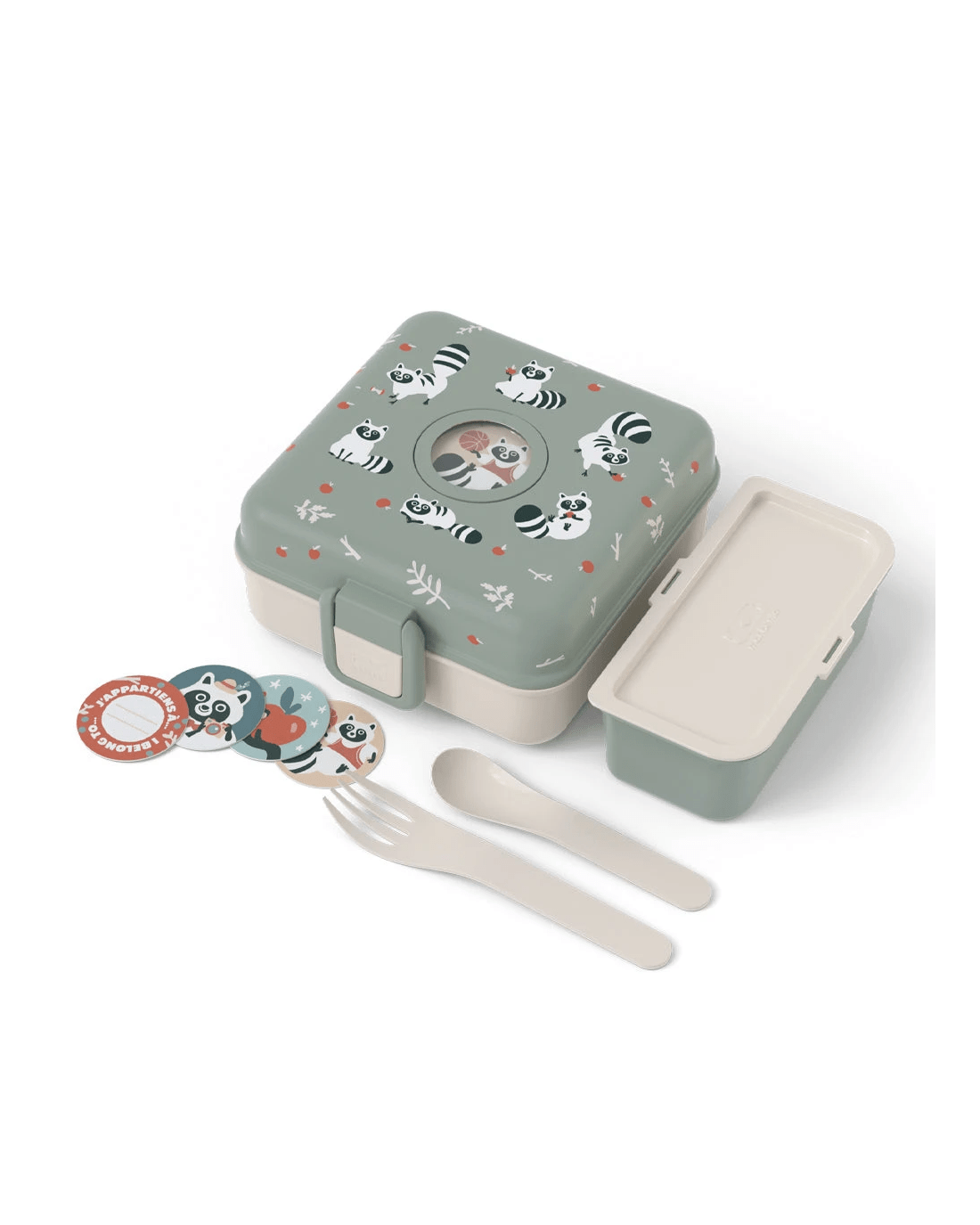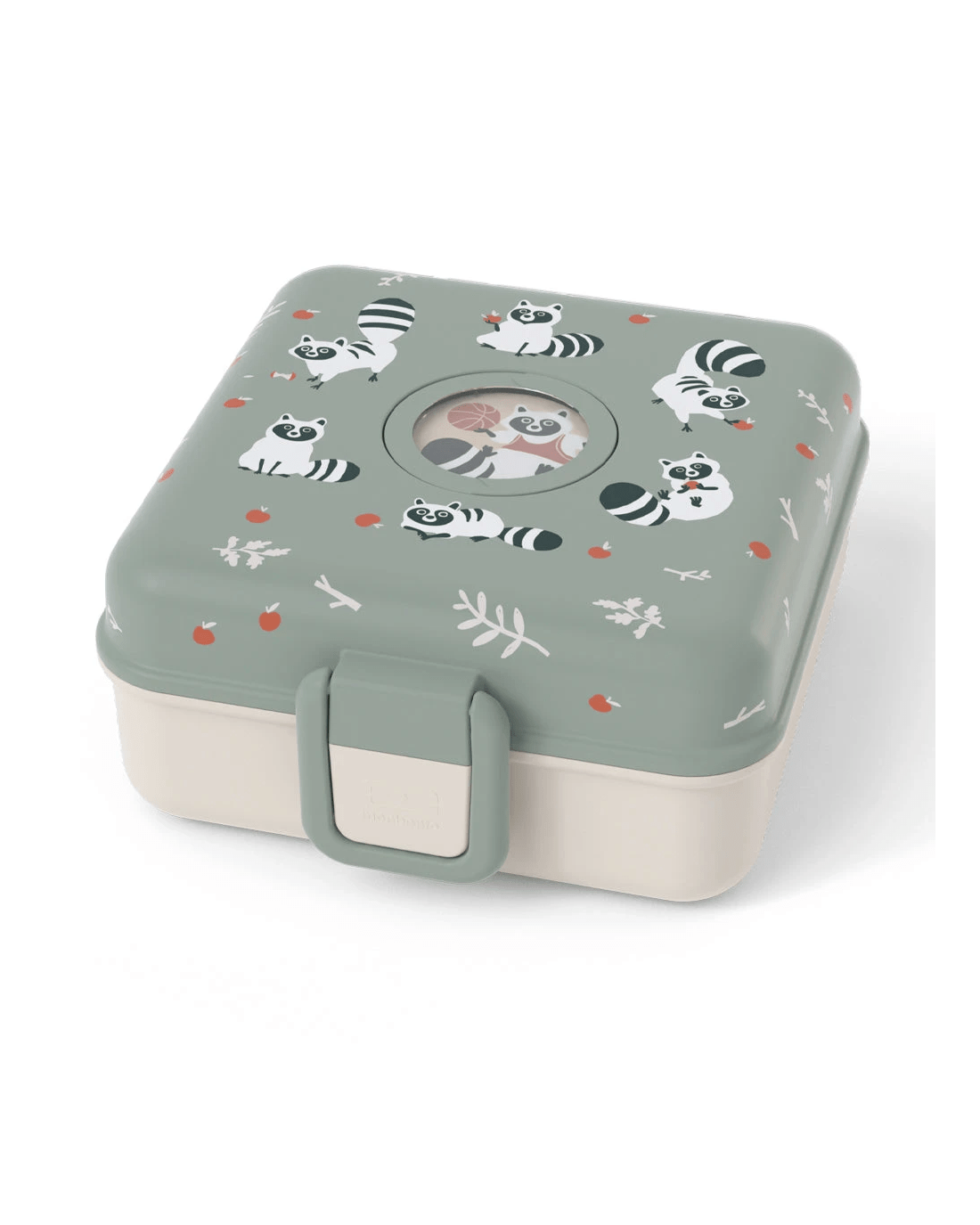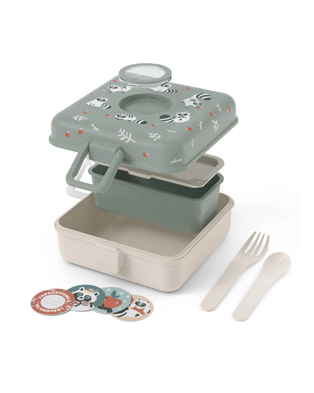 No more crushed snacks at the bottom of school bags! The Monbento Mb Sandwich Lunch Box Snacky - Raccoon is designed to keep food fresh, organised, and fun. Big enough to fit a whole sandwich, a juice box, and extra treats, it’s the perfect companion for school days, outings, and adventures. With its Raccoon colour and customisable lid, this snack box lets kids express their personality while enjoying their favourite foods. Practical, compact, and easy to use, it’s built to handle busy days and hungry little foodies. Key Features - Customisable lid with 4 interchangeable tokens included - Option to add your child’s name to avoid mix-ups at school - Spacious design fits a full sandwich, snacks, and a juice box - Built-in fork and spoon stored neatly under the lid - Removable compartment with lid to separate foods or add extras - Crumb-proof seal keeps school bags clean - Large latch that’s easy for small hands to open and close - Compact, flat shape for easy carrying - BPA-free and food-grade materials - Dishwasher-safe for easy cleaning - Lifetime warranty Additional Information - Not suitable for children under 4 years old - BPA-free in accordance with regulations Dimensions & Capacity - Product dimensions: 16 × 14.4 × 7 cm (6.3 × 5.7 × 2.8 in) - Capacity: 850 ml / 28.8 fl oz - Weight: 277 g / 0.6 lbs What’s Included / Composition - 1 PP) - 1 container (PP) - 1 removable compartment with lid (PP) - 1 seal (silicone) - 1 fork and 1 spoon (PLA)