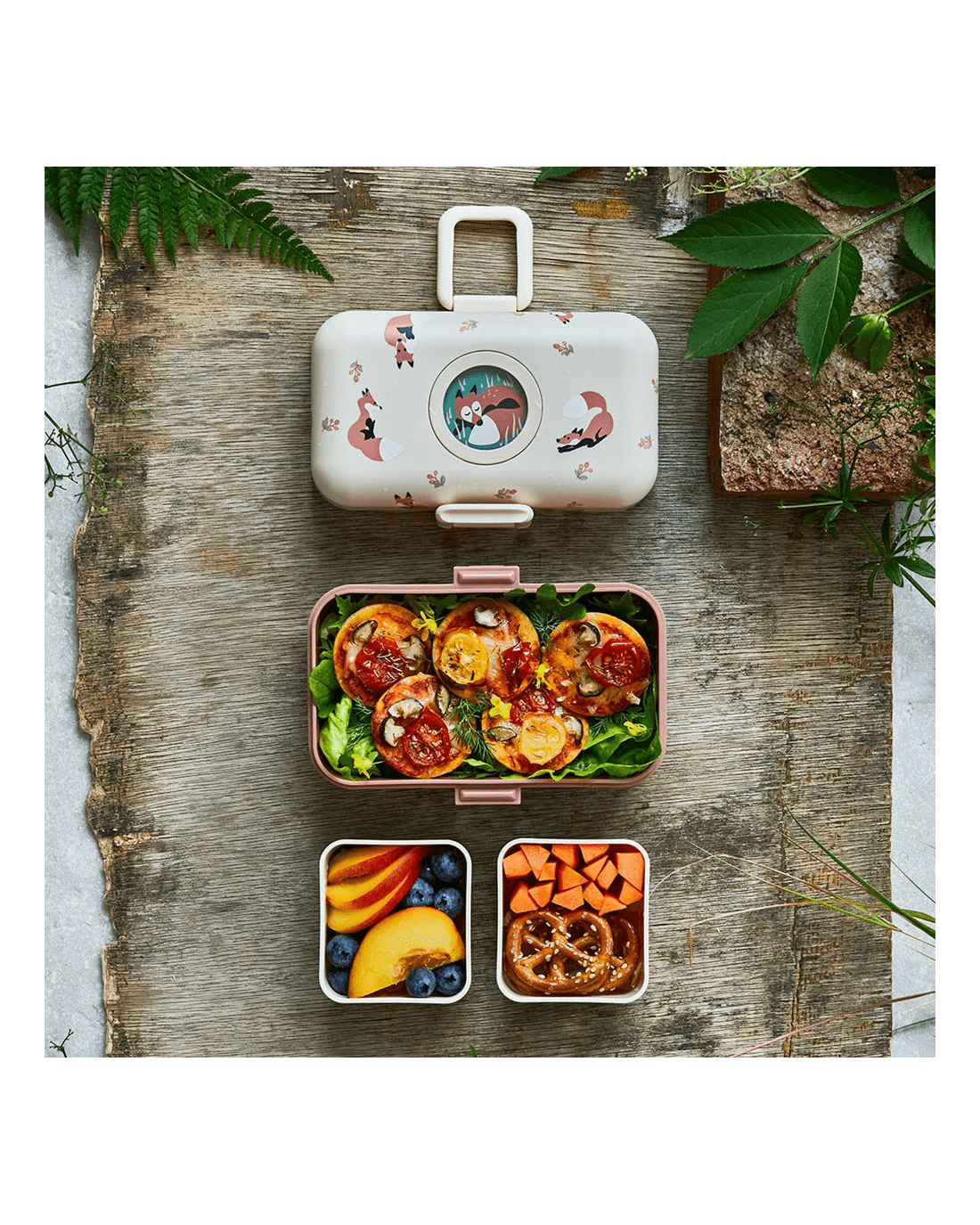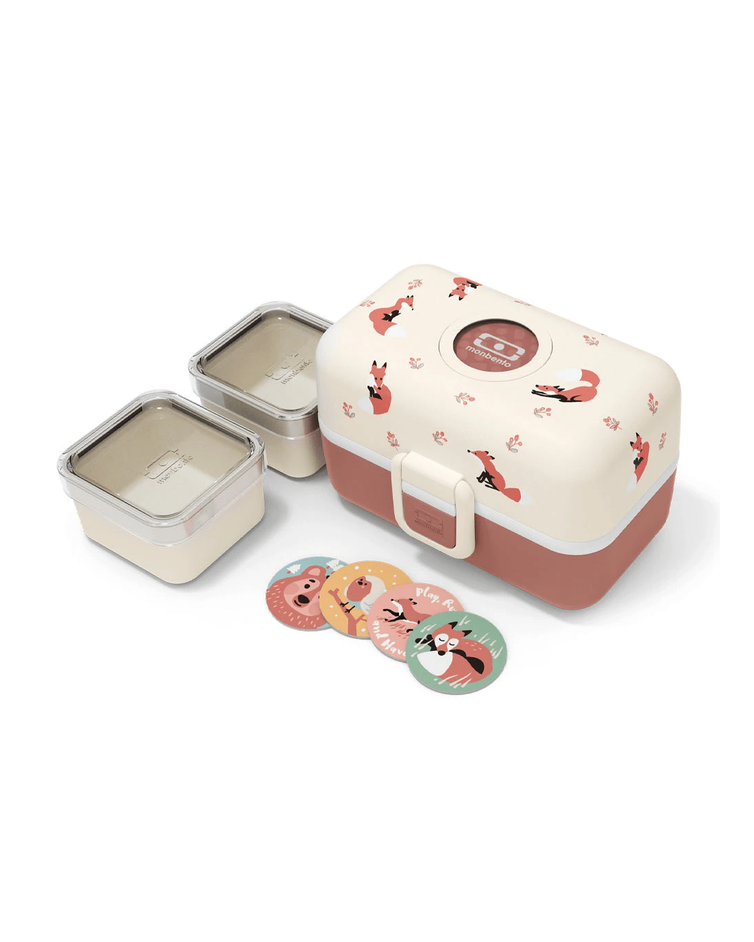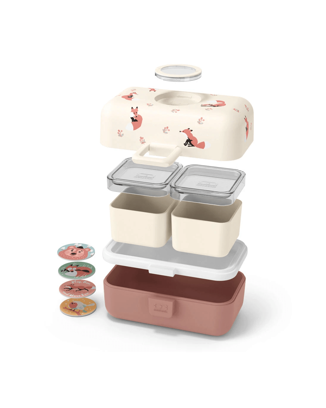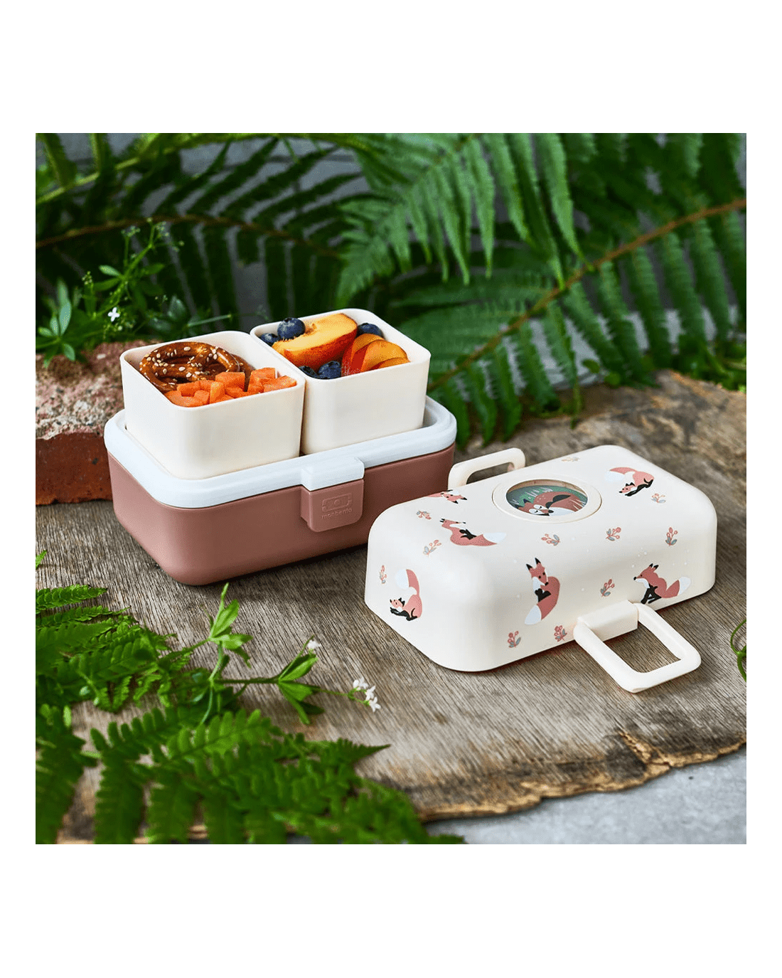 Lunchtime adventures and sweet dreams are guaranteed with the Monbento Mb Tresor Kids Bento Box - Fox. Perfect for school, playrooms, and day trips, this compact and durable lunch box is designed to go wherever little explorers do — while keeping their food safe and secure. Created in collaboration with parents and tested by kids, the MB Tresor is easy to use, fun to personalise, and built to handle everyday adventures. Thanks to its airtight lower compartment and shock-absorbing rounded edges, this bento box protects lunches from bumps, spills, and hungry little hands. Its smart design slips easily into backpacks and school bags, making it the ideal companion for busy days. With interchangeable decorative tokens and an optional personalised name or message, the MB Tresor is easy to identify and encourages creativity — no more lunchbox mix-ups at school or daycare. Key Features - Easy open and close clasps designed for small hands - Customisable front tag with removable tokens (4 designs included) - Option to add a personalised name or message - Multiple compartments for balanced meals - Airtight lower compartment (once screwed shut) - Compact, backpack-friendly design - Shock-absorbent rounded edges for durability - Microwave-safe (see usage instructions below) - Dishwasher-safe - Freezer-safe - Refrigerator-safe - BPA-free and food-grade materials - Lifetime warranty Important Information - Not suitable for children under 4 years old - Designed to hold food for reheating — close the intermediate lid only when food is cold - BPA-free in accordance with current regulations Dimensions & Capacity - Product dimensions: 16 × 9.2 × 10.4 cm (6.3 × 3.6 × 4.1 in) - Capacity: 0.8 L (0.15 L × 2 + 0.5 L) / 27 fl oz - Weight: 385 g / 0.8 lbs Components - 1 lid (PP) - 2 locks (PP) - 2 food cups (PP + Tritan) - 1 intermediate lid (PP) -1 seal (silicone) -1 container (PP)