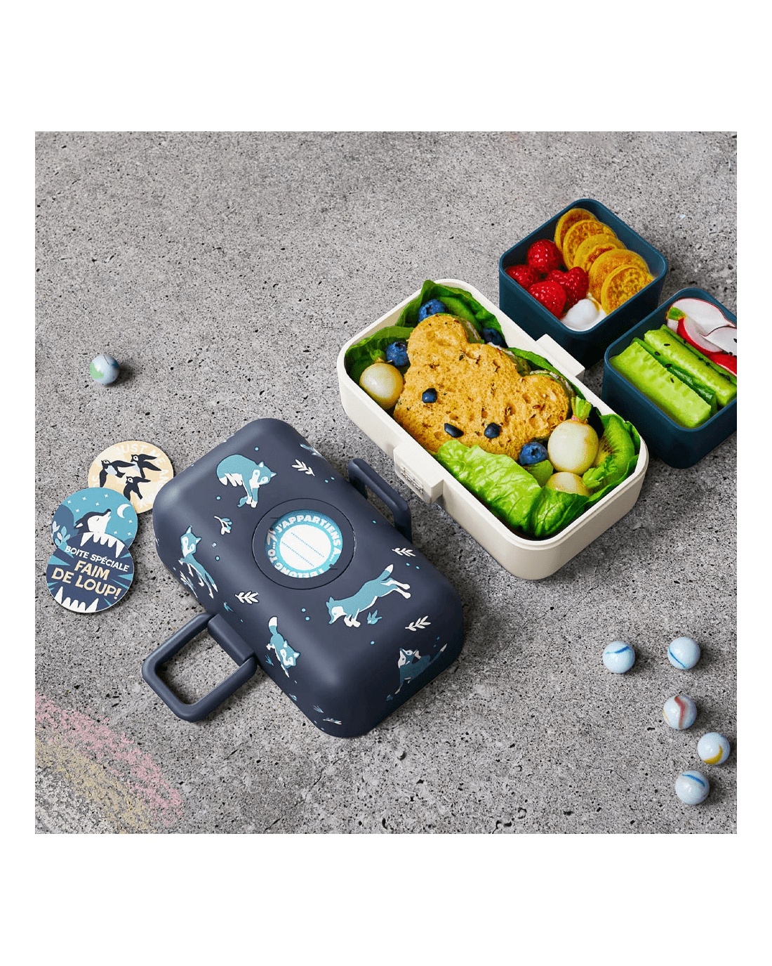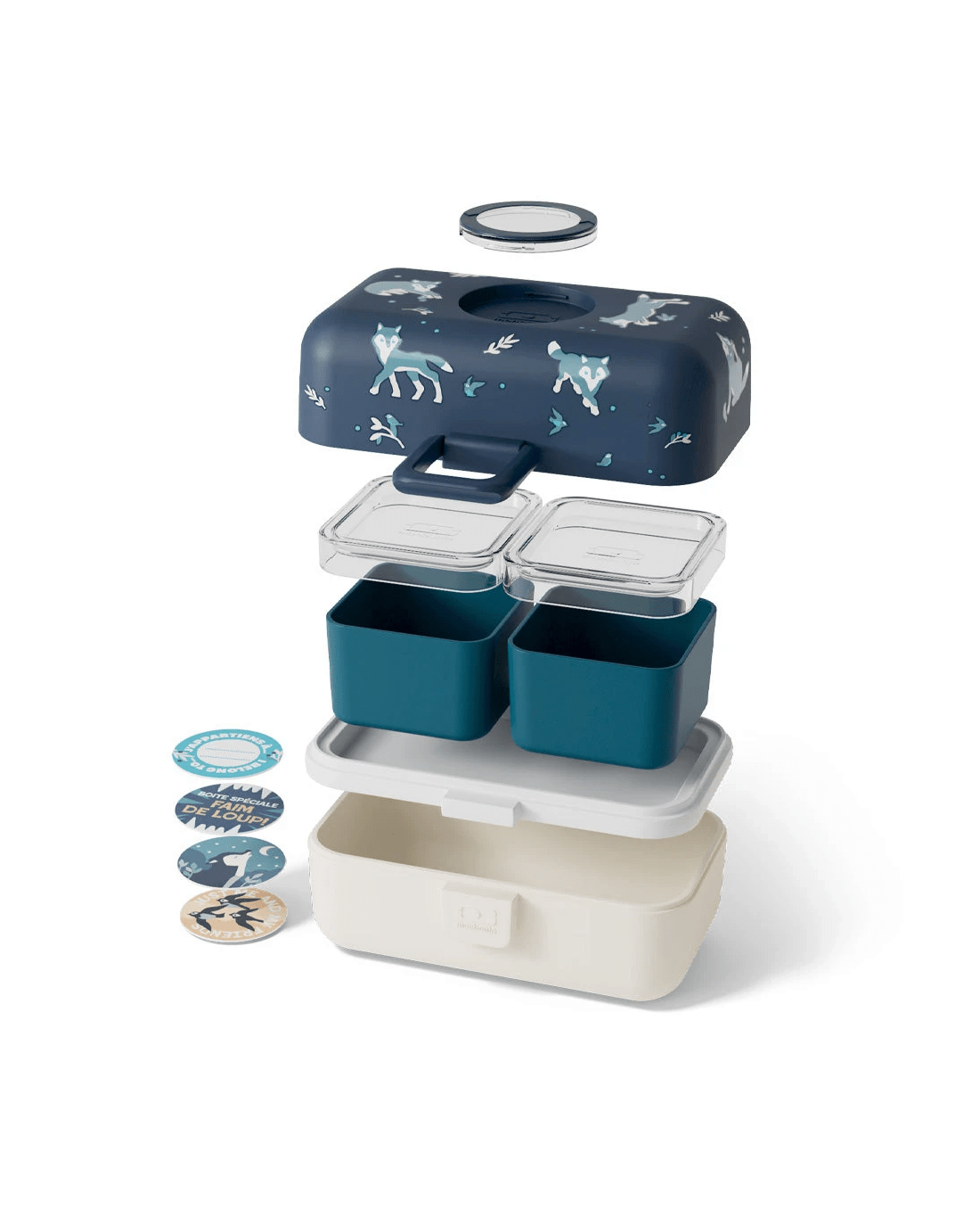 Lunchtime adventures and sweet dreams are guaranteed with the Monbento Mb Tresor Kids Bento Box - Wolf. Perfect for school, playrooms, and day trips, this compact and durable lunch box is designed to go wherever little explorers do — while keeping their food safe and secure. Created in collaboration with parents and tested by kids, the MB Tresor is easy to use, fun to personalise, and built to handle everyday adventures. Thanks to its airtight lower compartment and shock-absorbing rounded edges, this bento box protects lunches from bumps, spills, and hungry little hands. Its smart design slips easily into backpacks and school bags, making it the ideal companion for busy days. With interchangeable decorative tokens and an optional personalised name or message, the MB Tresor is easy to identify and encourages creativity — no more lunchbox mix-ups at school or daycare. Key Features - Easy open and close clasps designed for small hands - Customisable front tag with removable tokens (4 designs included) - Option to add a personalised name or message - Multiple compartments for balanced meals - Airtight lower compartment (once screwed shut) - Compact, backpack-friendly design - Shock-absorbent rounded edges for durability - Microwave-safe (see usage instructions below) - Dishwasher-safe - Freezer-safe - Refrigerator-safe - BPA-free and food-grade materials - Lifetime warranty Important Information - Not suitable for children under 4 years old - Designed to hold food for reheating — close the intermediate lid only when food is cold - BPA-free in accordance with current regulations Dimensions & Capacity - Product dimensions: 16 × 9.2 × 10.4 cm (6.3 × 3.6 × 4.1 in) - Capacity: 0.8 L (0.15 L × 2 + 0.5 L) / 27 fl oz - Weight: 385 g / 0.8 lbs Components - 1 lid (PP) - 2 locks (PP) - 2 food cups (PP + Tritan) - 1 intermediate lid (PP) -1 seal (silicone) -1 container (PP)