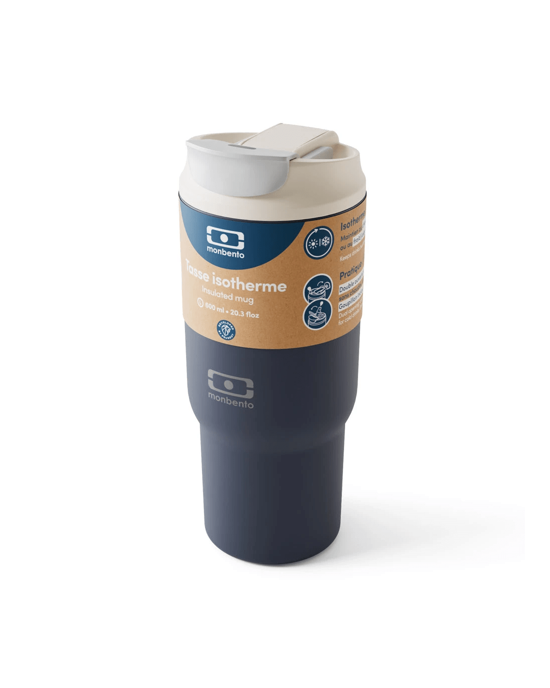 Take your favourite hot or cold drinks wherever life takes you. The Monbento Travel Mug L - Blue Infinity is designed for comfort, convenience, and performance—whether you’re commuting, working, or heading out on your next adventure. Its ergonomic shape fits comfortably in your hand, while the smart dual-function lid lets you sip or straw your drink depending on the moment. With double-wall insulation, this stainless steel travel mug keeps drinks hot for hours or refreshingly cold all day. Lightweight, leakproof, and built to last, it’s your perfect everyday companion—from morning coffee to iced tea or fresh juice. Key Features - Double-wall insulated design keeps drinks hot for up to 5 hours and cold for up to 12 hours - Dual-opening lid with sip spout for hot drinks and straw with silicone tip for cold beverages - Leakproof and airtight construction for worry-free travel - Lightweight yet durable stainless steel body - Comfortable ergonomic grip for everyday use - BPA-free and food-grade materials - Easy to clean with removable straw and included cleaning brush - Lid is dishwasher-safe; container is hand-wash only - Lifetime warranty for long-lasting confidence Specifications - Capacity: 600 ml / 20 fl oz - Weight: 315 g / 0.7 lbs - Dimensions: 8.8 × 8.5 × 21 cm / 3.5 × 3.4 × 8.3 in - Colour: Blue Infitiny Materials - Container: 304 stainless steel - Lid with integrated straw tip: PP, silicone - Straw: PP - Straw cleaning brush: stainless steel, nylon What’s Included - 1 × Insulated stainless steel container - 1 × Lid with integrated straw tip - 1 × Straw - 1 × Straw cleaning brush