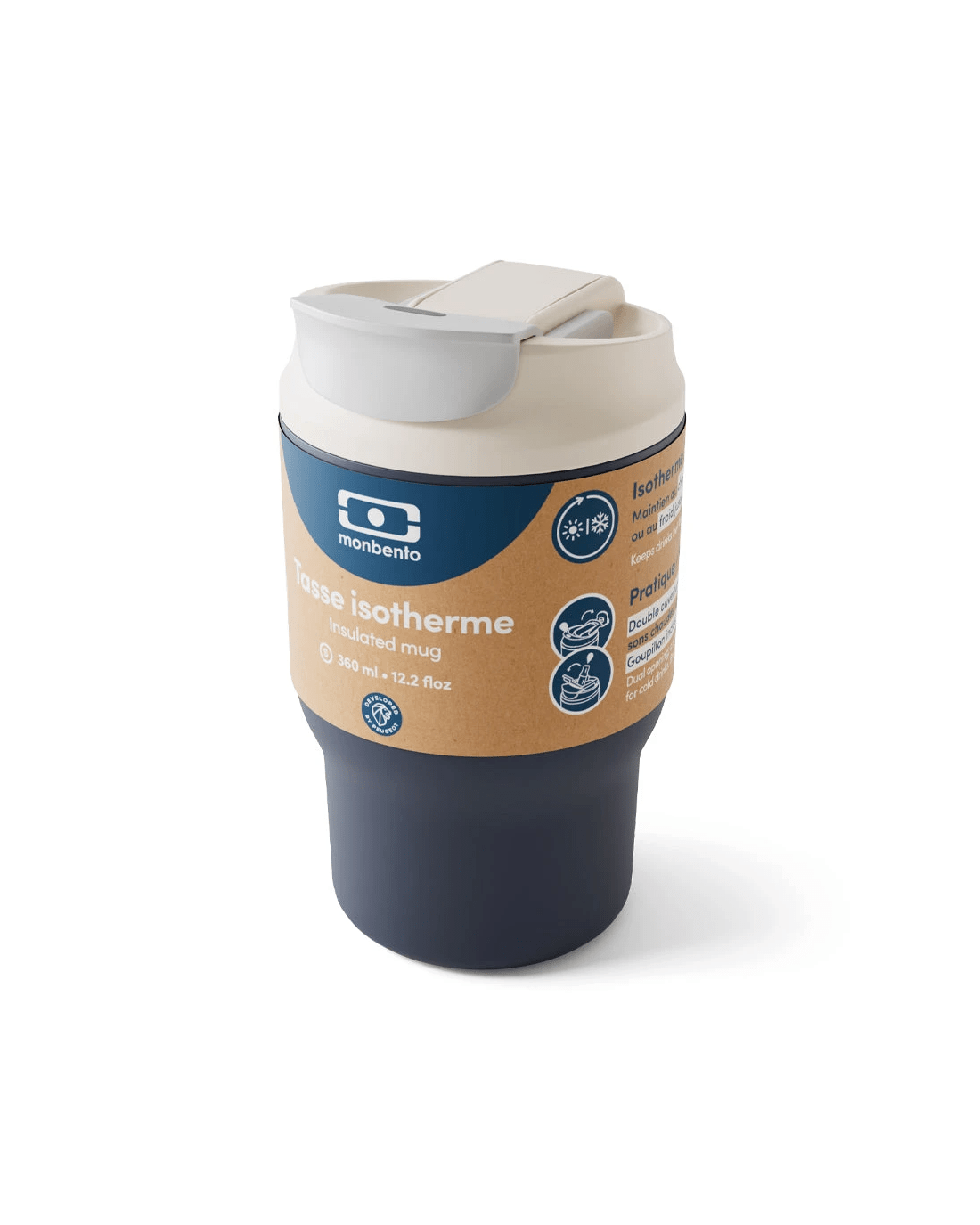 Head to work or set off on your next adventure with confidence. The Monbento Travel Mug S - Blue Infinity keeps your coffee or tea at the perfect temperature wherever you go. Designed for everyday convenience, this insulated tumbler features a smart dual-opening lid that adapts to both hot and cold drinks. Its ergonomic shape ensures a comfortable grip, while the lightweight, leakproof design makes it easy to carry everywhere. With a soothing Blue Infinity finish and a compact 360 mL capacity, it’s the ideal companion for coffee, tea, iced drinks, or juice—at home, in the office, or on the move. Key Features - Double-wall insulation keeps drinks hot for up to 5 hours and cold for up to 12 hours - Dual-opening lid with spout for hot drinks and straw for cold beverages - Leakproof and airtight design for worry-free travel - Lightweight and compact for easy everyday use - BPA-free and food-grade materials for safe drinking - Includes a straw cleaning brush for easy maintenance - Dishwasher-safe lid; container recommended for hand washing - Durable construction with lifetime warranty Specifications Capacity: 360 mL / 12 fl ozWeight: 240 g / 0.53 lbsDimensions: - 8.8 × 8.5 × 15 cm - 3.5 × 3.4 × 5.9 in Materials: - 1 × Container (304 stainless steel) - 1 × Lid with integrated straw tip (PP, silicone) - 1 × Straw (PP) - 1 × Straw cleaning brush (stainless steel, nylon) Care Instructions: - Lid: dishwasher-safe - Cup body: hand wash recommended