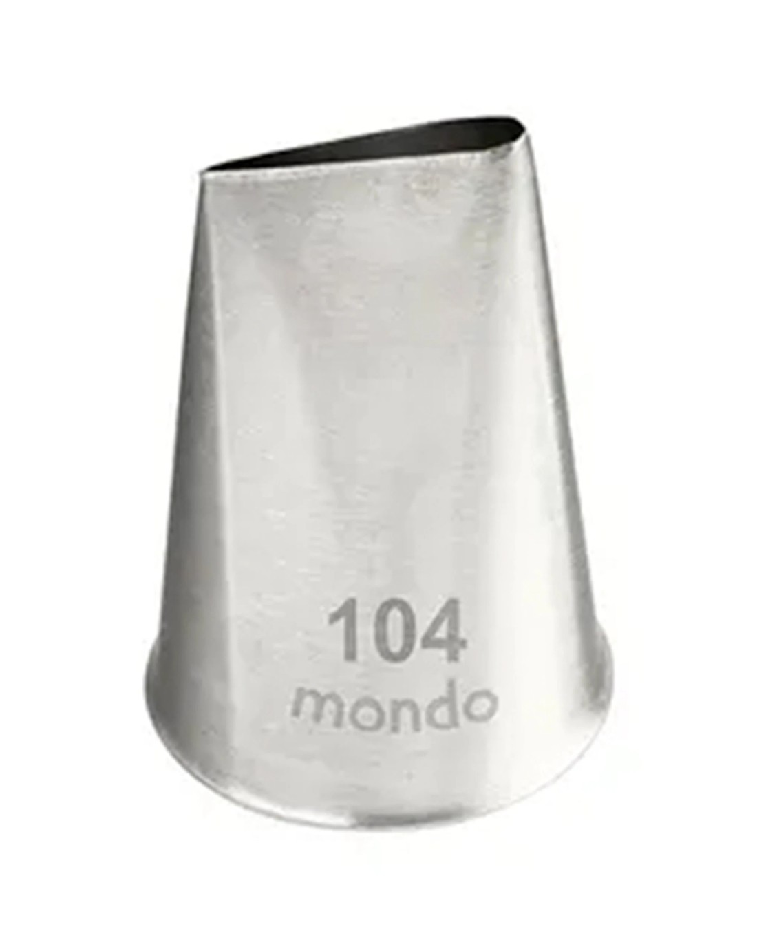 The Mondo Stainless Steel Rose Piping Tip is designed for creating detailed and realistic flower petals, ruffles, bows, and swags when decorating cakes and baked goods. Its professional-quality construction makes it a versatile tool for both home bakers and experienced decorators.Made from durable, rust-proof stainless steel, this piping tip ensures long-lasting performance and is easy to clean, as it is top-rack dishwasher safe. Its conical shape allows for precise control and diverse decorative effects, making intricate cake decorating effortless.Key Features:Durable Stainless Steel Material Crafted for long-lasting use and resistance to rustPrecision Decorating Ideal for realistic flower petals, ruffles, bows, and swagsEasy Cleaning Dishwasher safe for quick and hygienic cleanupVersatile Design Suitable for a variety of decorative techniques with a conical shapeTrusted Brand Mondo offers high-quality cake decorating toolsSpecifications:Brand: MondoProduct Type: Cake Decorating ToolModel Number: #104Design: Conical shape for versatile decorationIncluded: 1 x Piping TipCompatibility: Suitable for use with standard piping bags