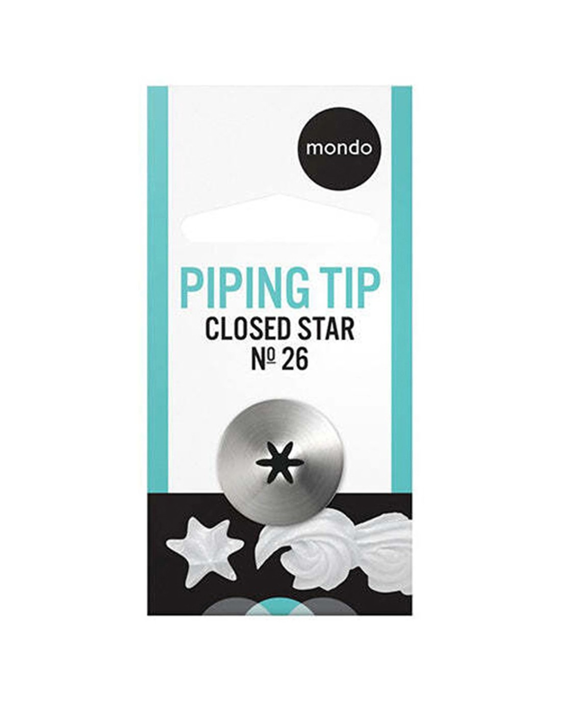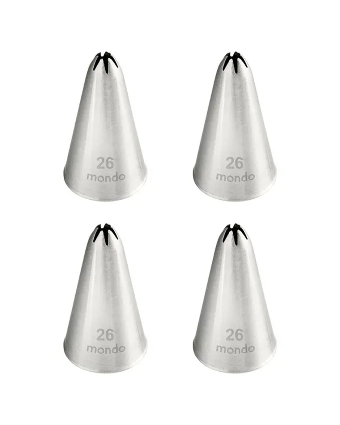 The MONDO 4PK Stainless Steel #26 Closed Star Piping Tip Set is designed for cake decorating enthusiasts and professionals alike. This set offers a versatile tool for creating a variety of decorative icing patterns with precision and ease.