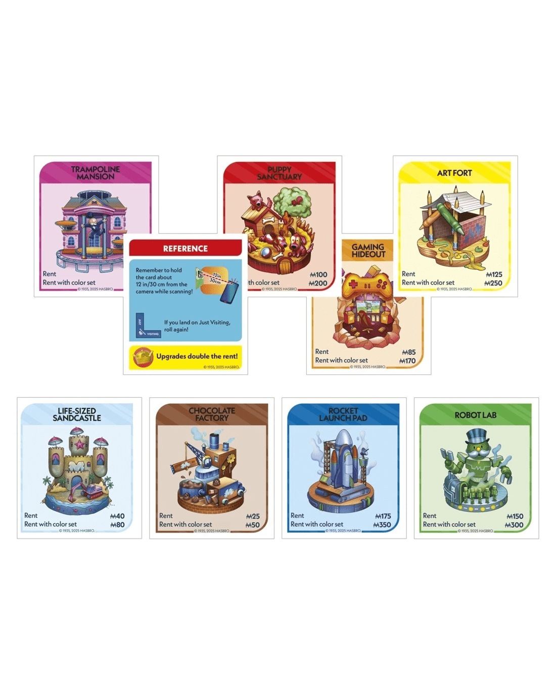 - Kid themed properties: A chocolate factory! mythical stable! skyscraper waterslide! Explore the board to visit imaginative, kid-focused properties