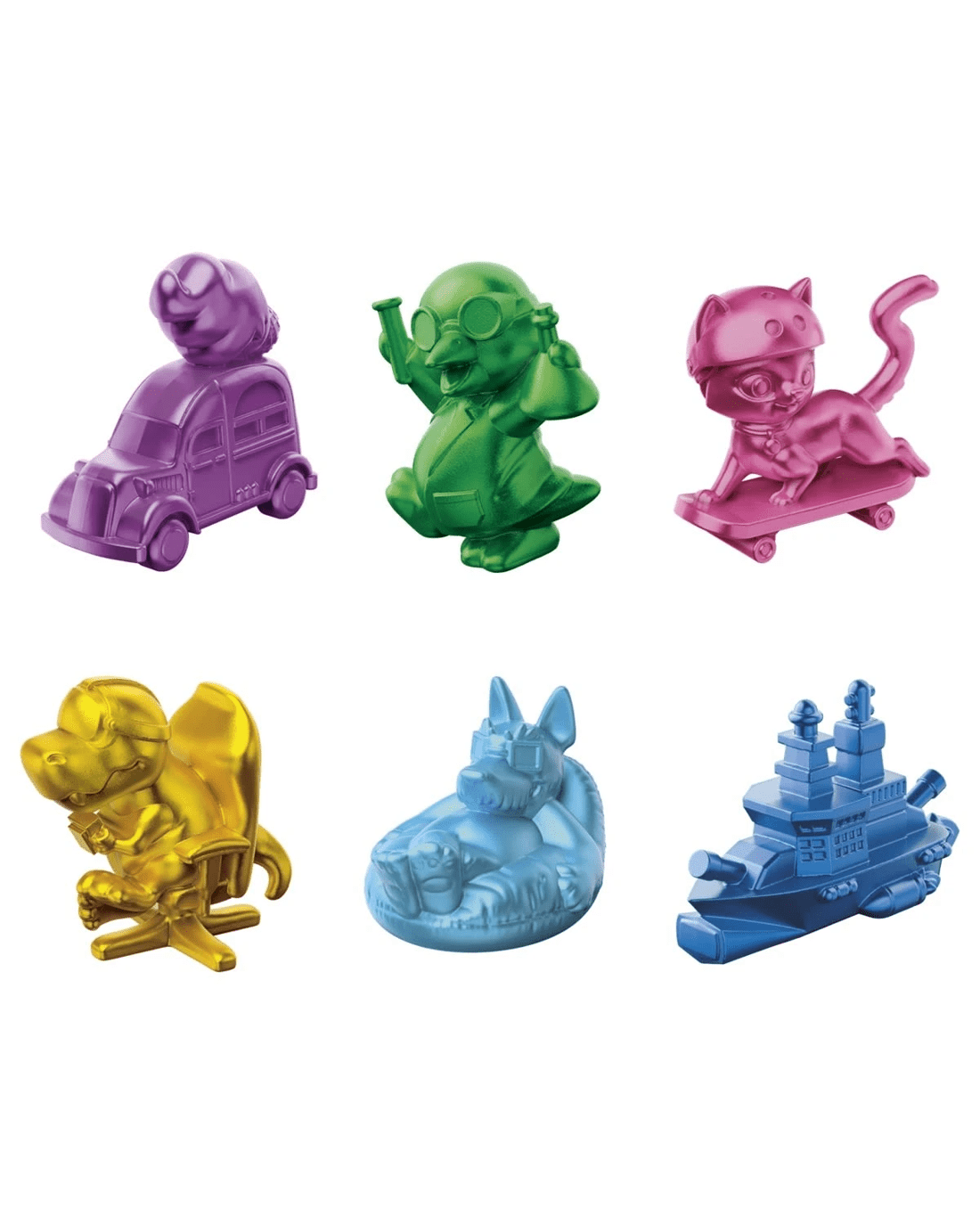 - 6 reimagined, colourful tokens: This Monopoly kids board game includes 6 modernised tokens featuring familiar characters: Hazel the Cat, Car, Penguin, Scottie, Battleship and T-Rex