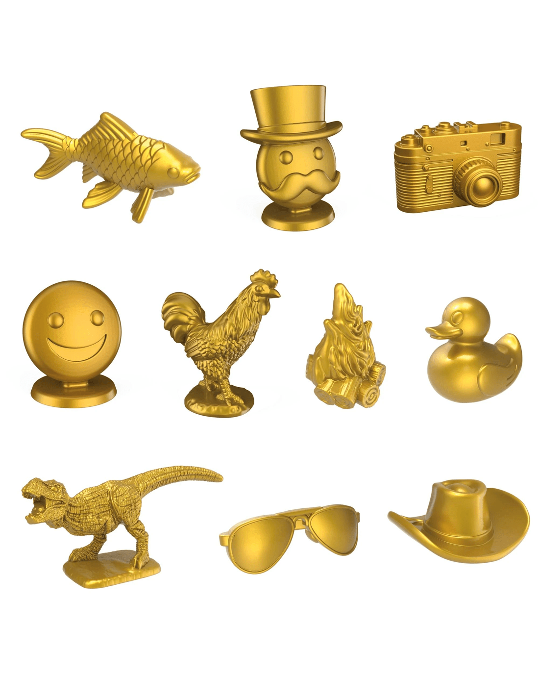 - 10 GOLDEN TOKENS: Choose a token that best fits your personality. Are you Campfire (the lit one)? Or Rooster (the cocky one)? Also includes Duck, Cowboy Hat, T Rex, Smiley Face, Aviators, Fish, and more