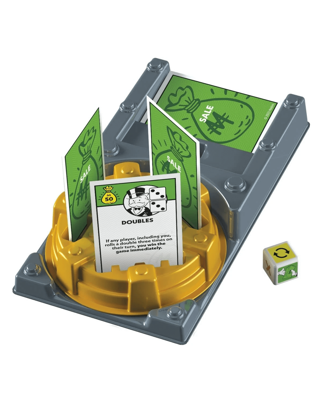 - Includes 1 x rotating sale vault with base, 1 x buy dice with stickers, 20 x sale cards, 8 x title deeds, 4 x reminder cards and 1 x expansion guide