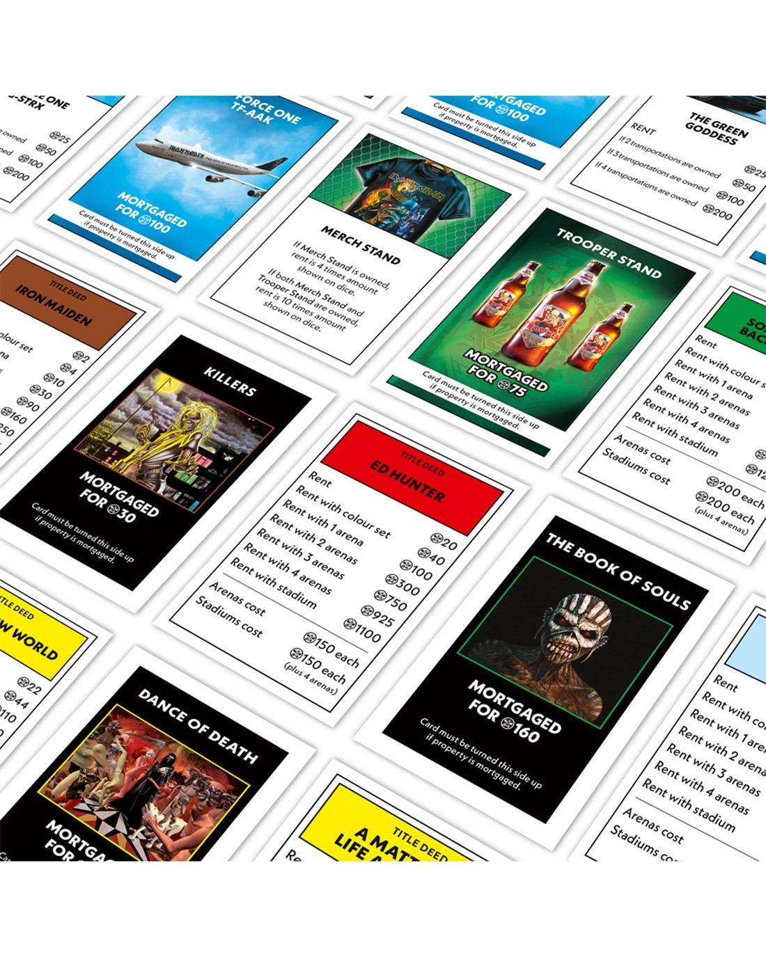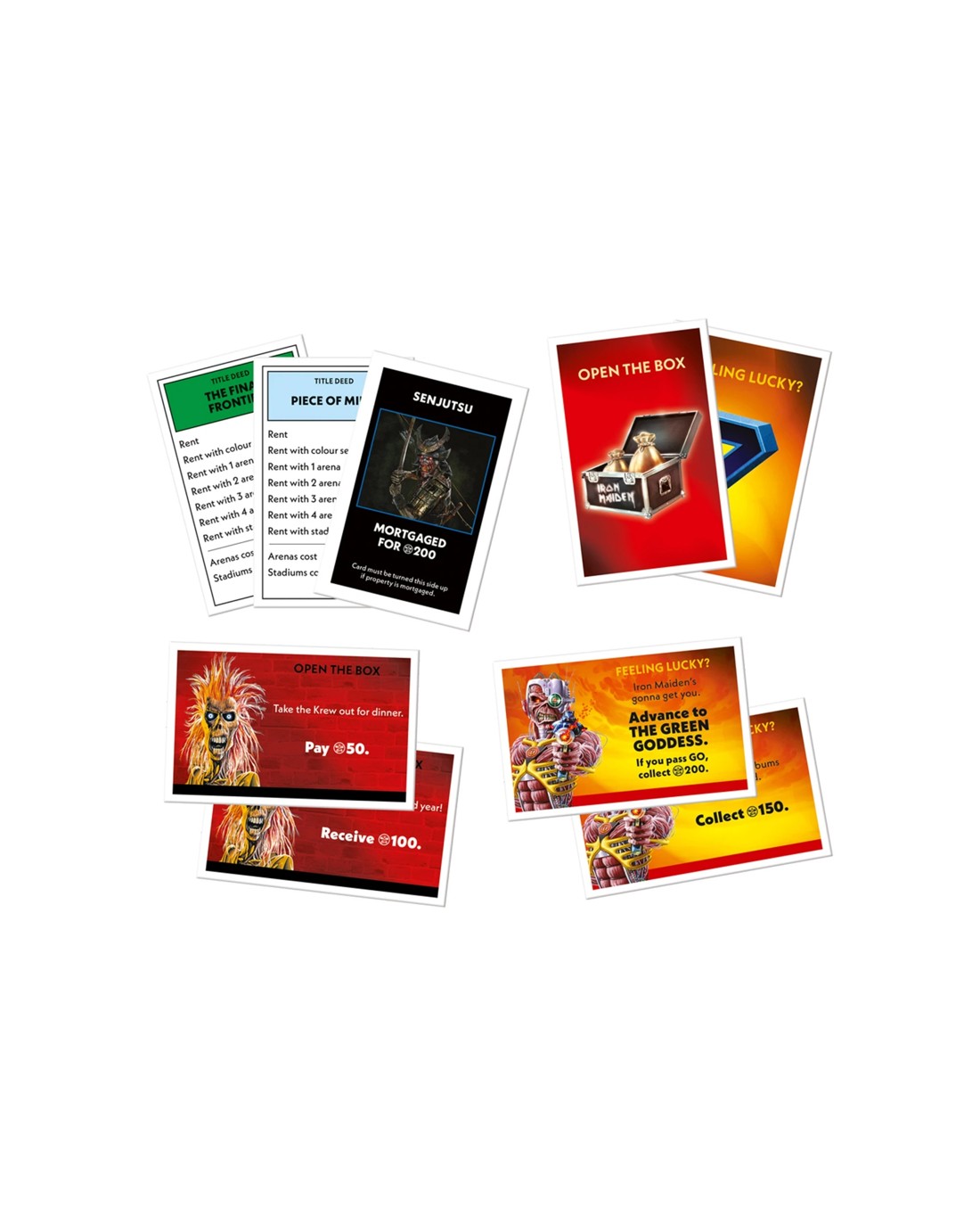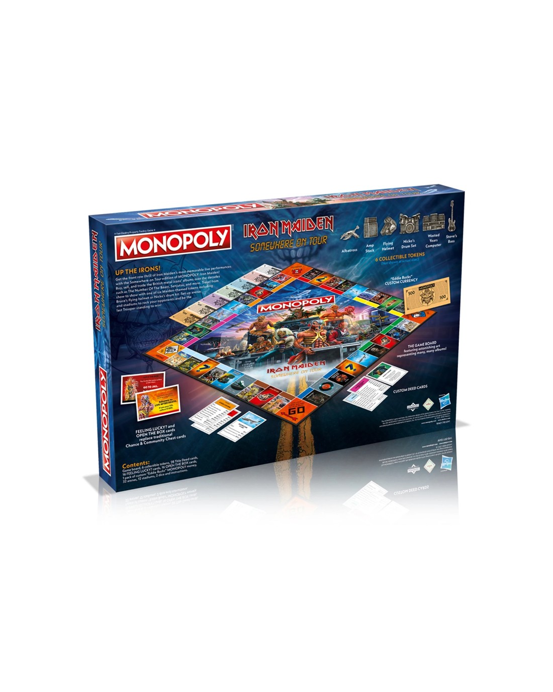 Enjoy playing with exclusive Iron Maiden-themed tokens such as Flying Helmet and Steve's bass, which add authenticity and excitement to the game. Relive memorable tours like the Legacy of the Beast and Somewhere Back in Time as you buy, sell, and trade band-inspired properties. The game also features special Open the Box and Feeling Lucky? cards that test your dedication and help you accumulate Eddie Bucks to win the game.