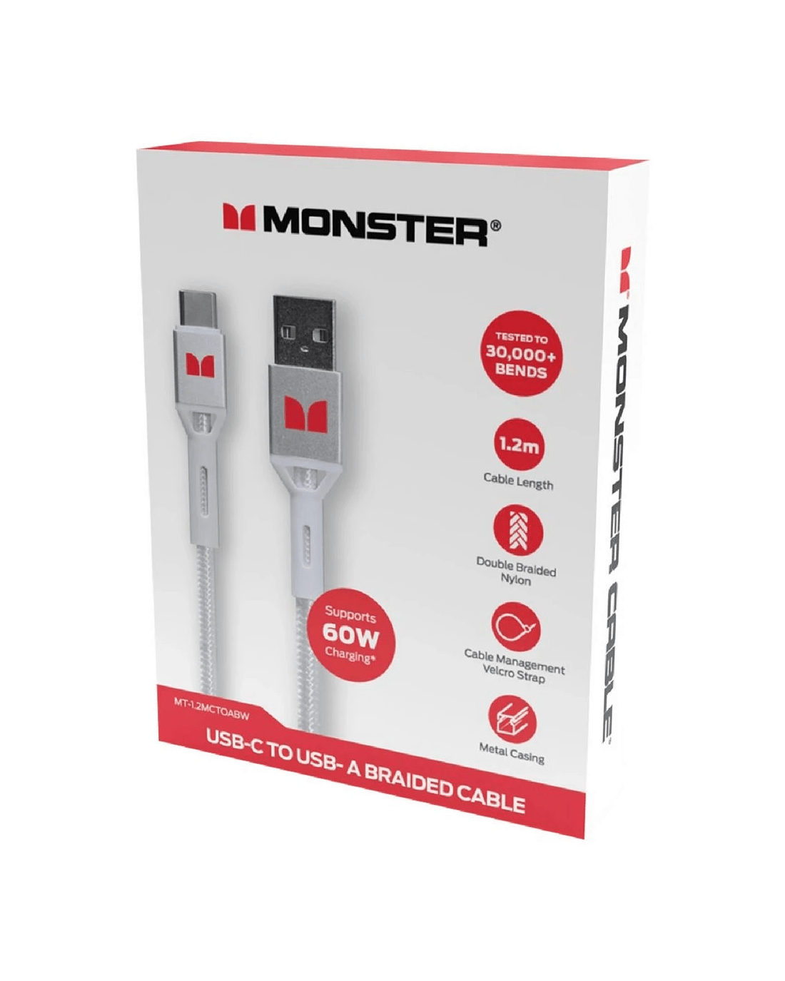 Monster Braided USB-A to USB-C Cable 1.2m White