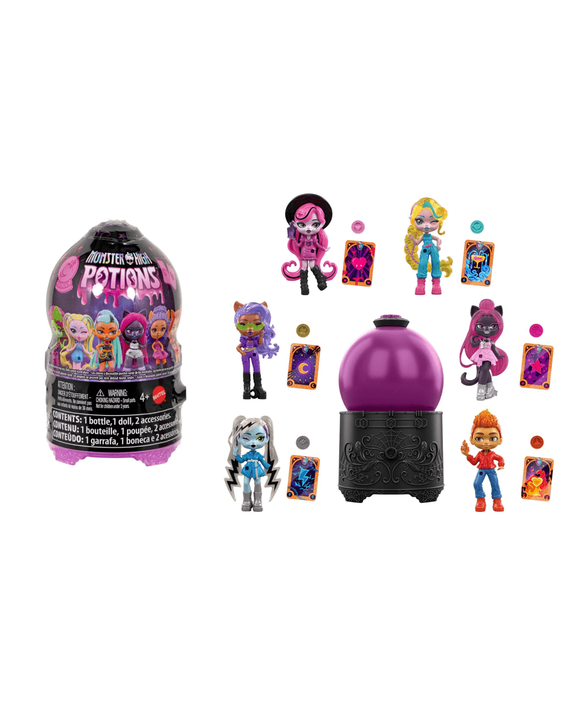 - Includes 1 x Monster High Potions bottle with 1 x doll figure, 1 x charm, and 1 x fortune card