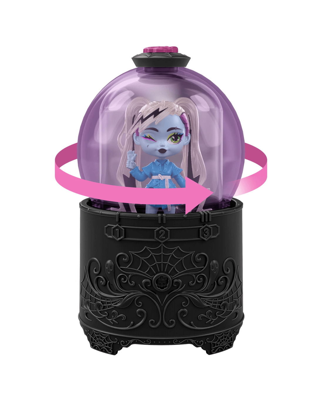- Now it's time to see which ghoul will materialize. Twist the crystal ball to watch the 'magic' potion vanish and reveal the fright sized doll inside!