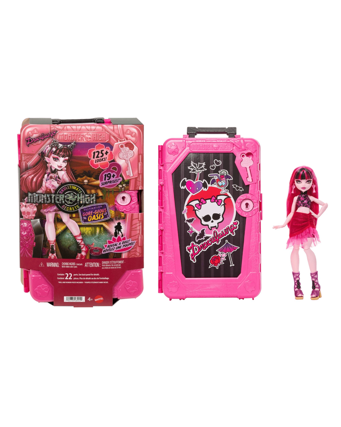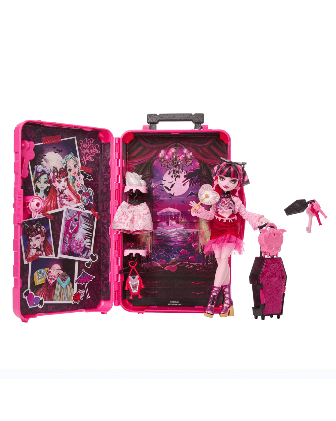 - Includes 1 x Draculaura doll, 1 x storage case, 3 x keys, 2 x suitcases and assorted clothing and accessories
