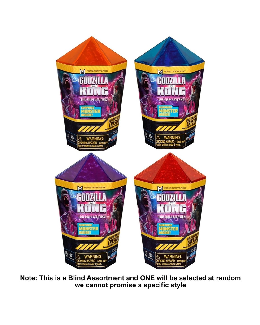 Return to Hollow Earth with Godzilla and Kong in an all-new adventure! When a colossal threat is discovered within our world, Godzilla and Kong must fight to protect their existence - and our own. The Godzilla x Kong 4.5” Hollow Earth Crystal brings a mysterious 2″ Surprise Monster to your collection! Open the crystal to discover the character hidden inside. Collect them all. Ages 4 +Contents