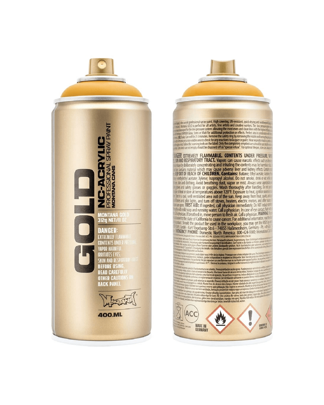 This Montana GOLD Spray Paint can be applied to canvas, wood, concrete, metal and more making it ideal for a range of art applications. It's designed to be high covering and quick drying so you can complete your artwork in a timely fashion. The low pressure system enhances accuracy and precision for detailed works of art.