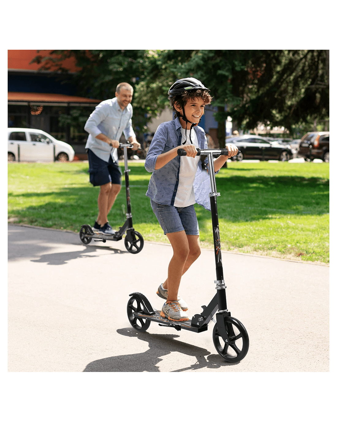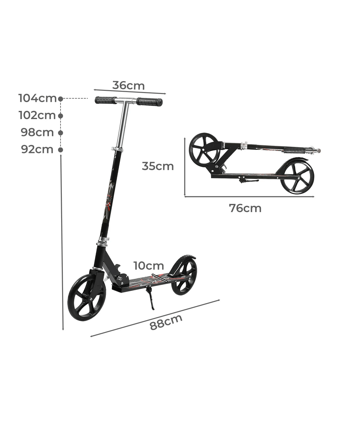 One of the standout features of our scooter is its adjustable height, ranging from 92cm to 98cm to 102cm to 104cm. This allows riders to customize the scooter's height according to their preference and comfort level, ensuring an ergonomic riding experience for users of different heights.