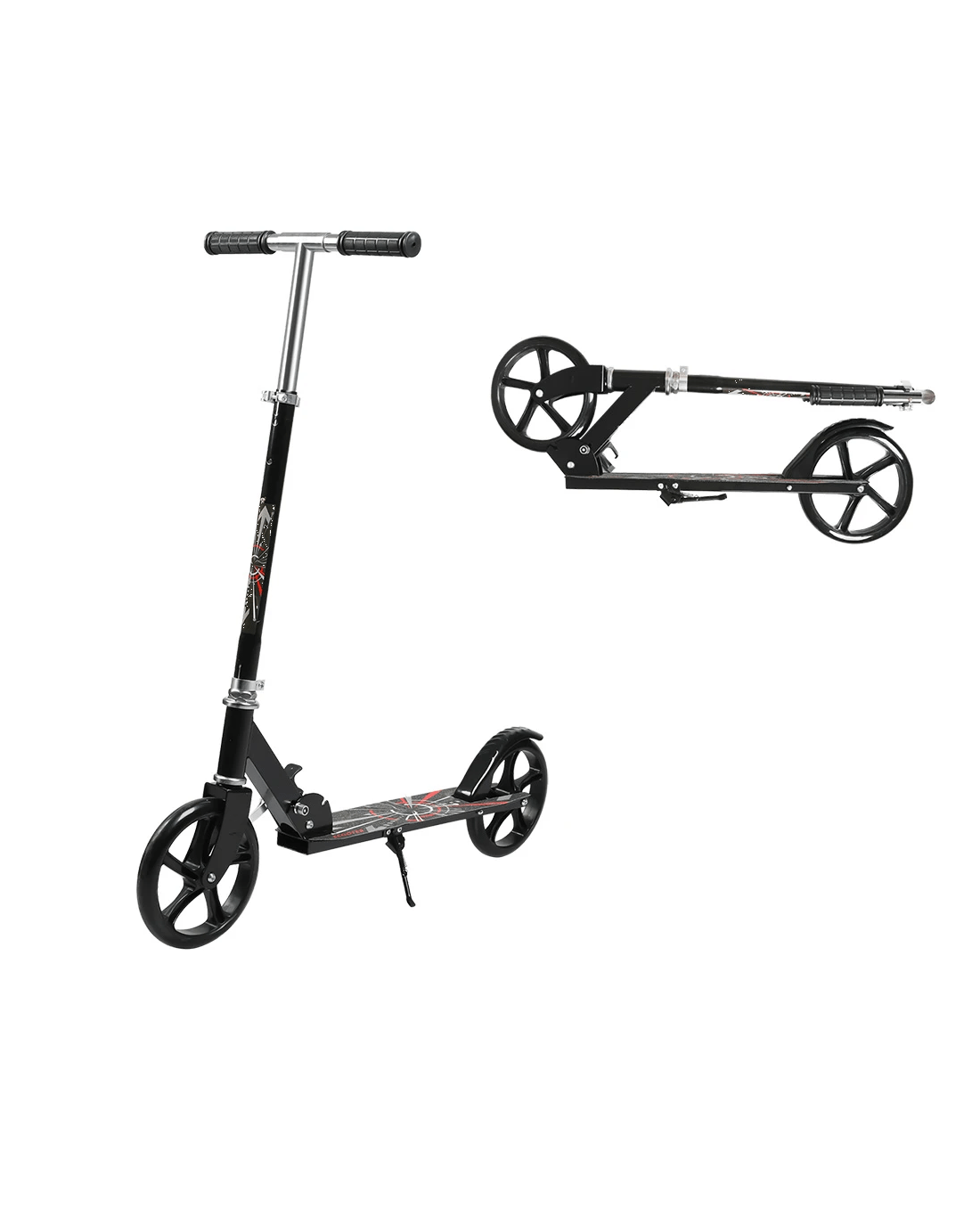Convenience is also a key factor in our scooter's design. The handlebars feature a one-click folding mechanism, allowing you to quickly fold the scooter for easy storage. Whether you're commuting or heading to the park, this compact and lightweight scooter fits into the smallest spaces.
